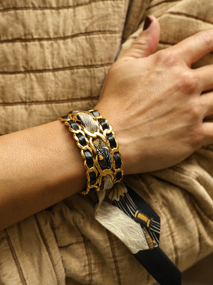 北京仓|AN-NEE-C3G-DECEMBRE-NOIR-黑色 波西米亚 2cm 丝巾手镯[法国设计师]