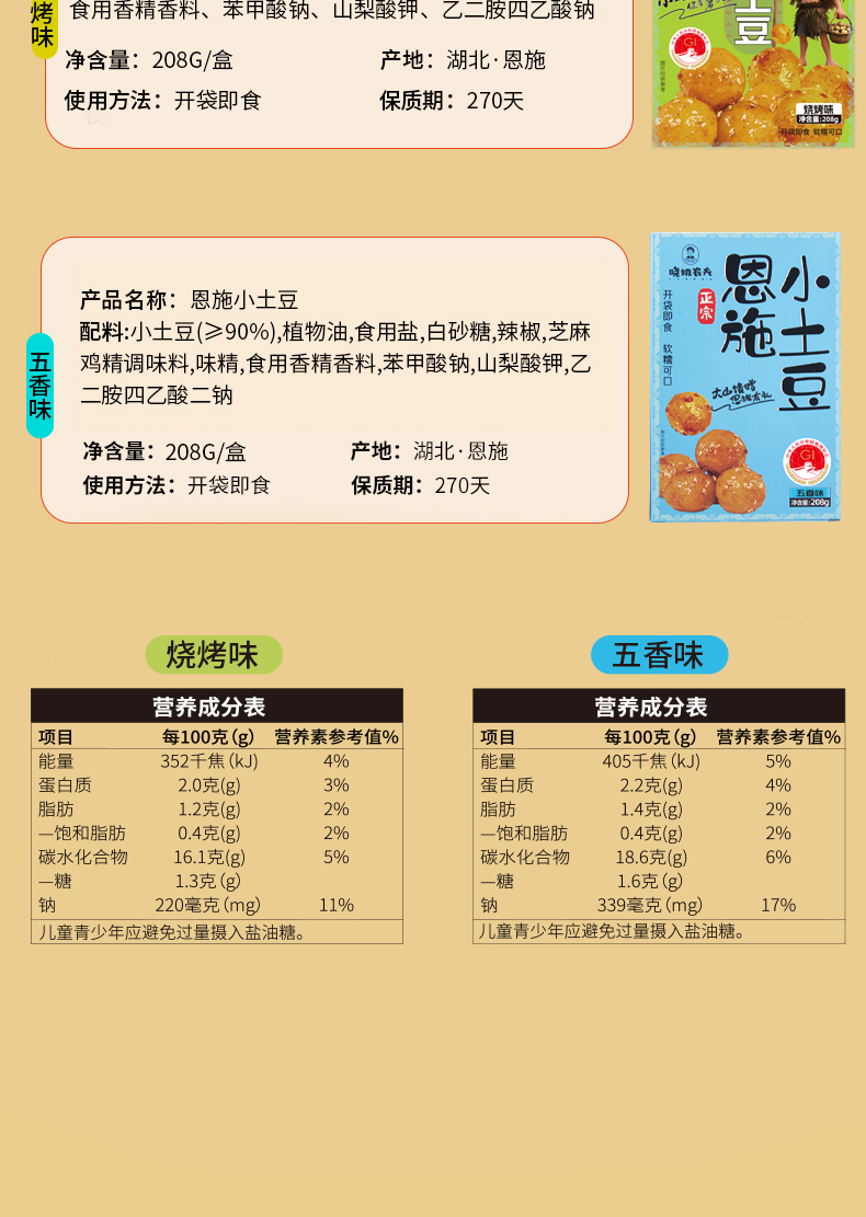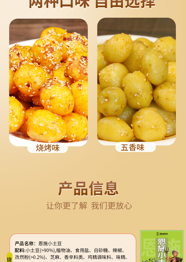 【宜昌助农馆】晓姚农夫 恩施小土豆208g*2袋 五香味+烧烤味