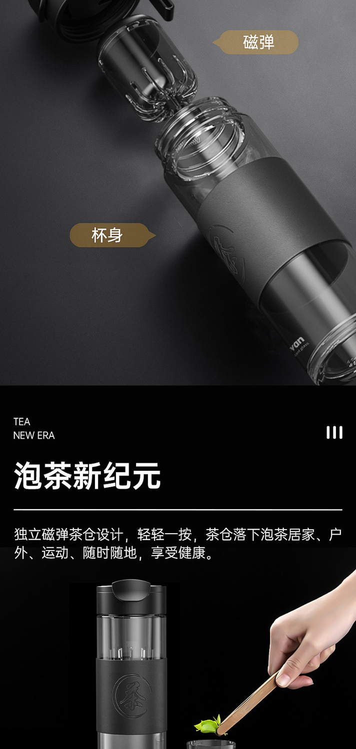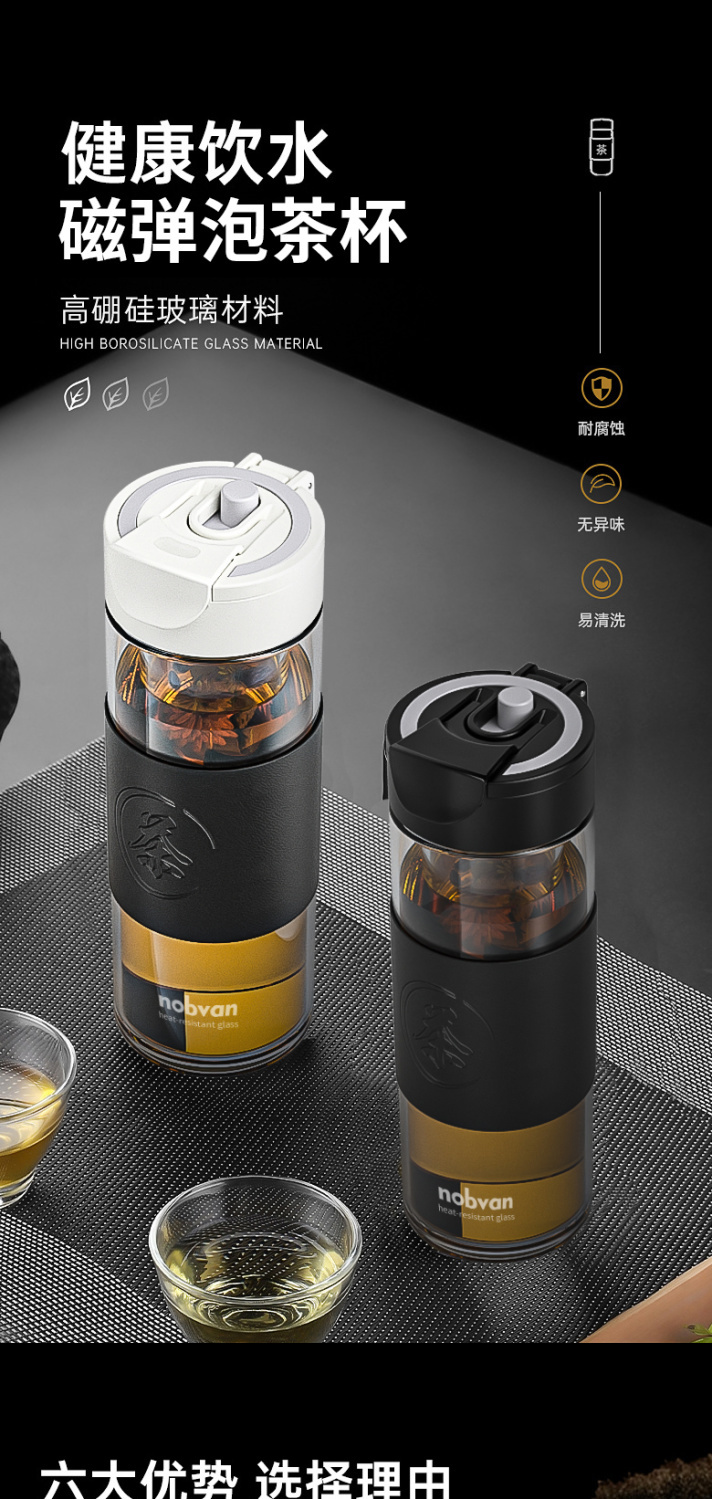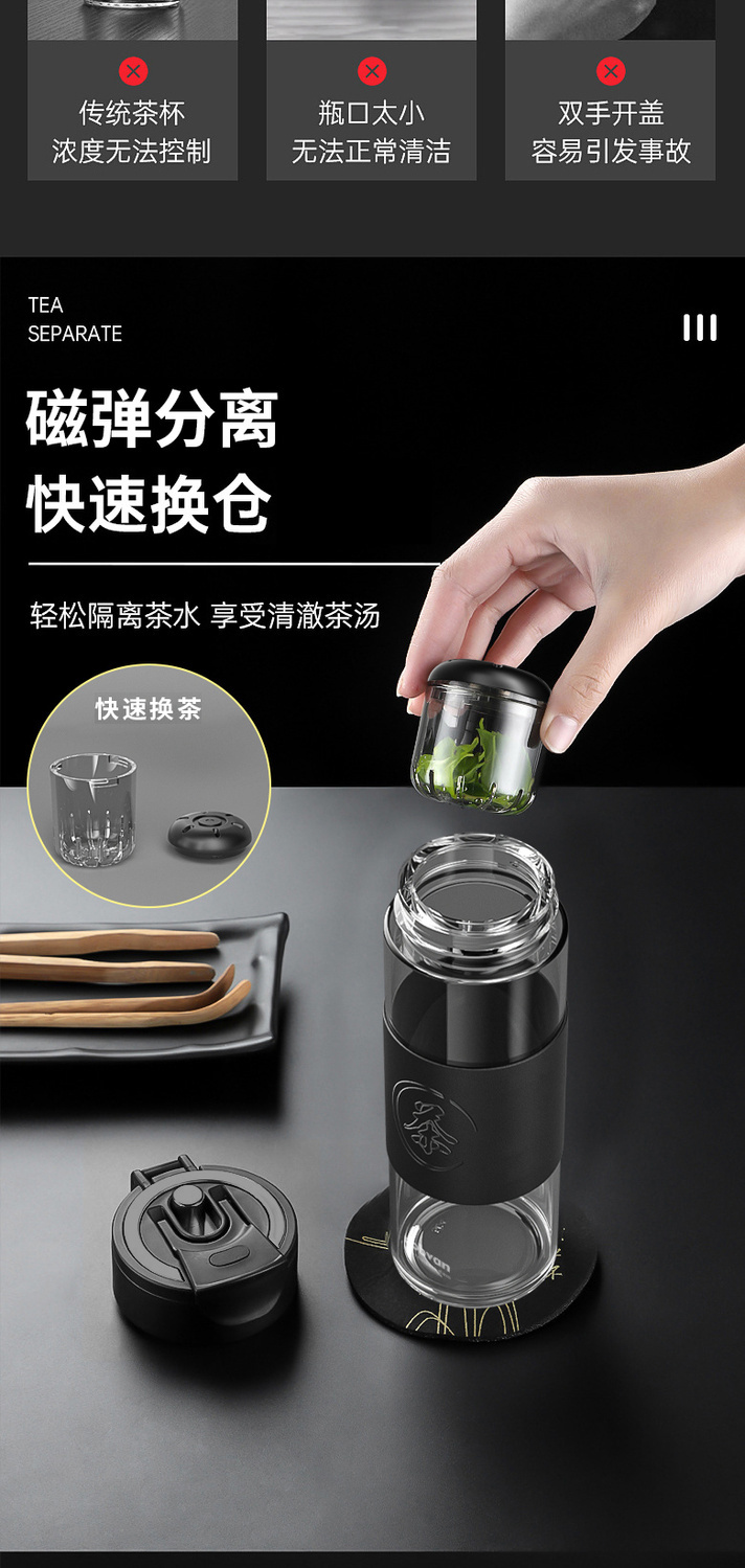 高级泡茶水杯茶水分离杯磁弹杯新款带提绳玻璃杯耐高温玻璃水杯