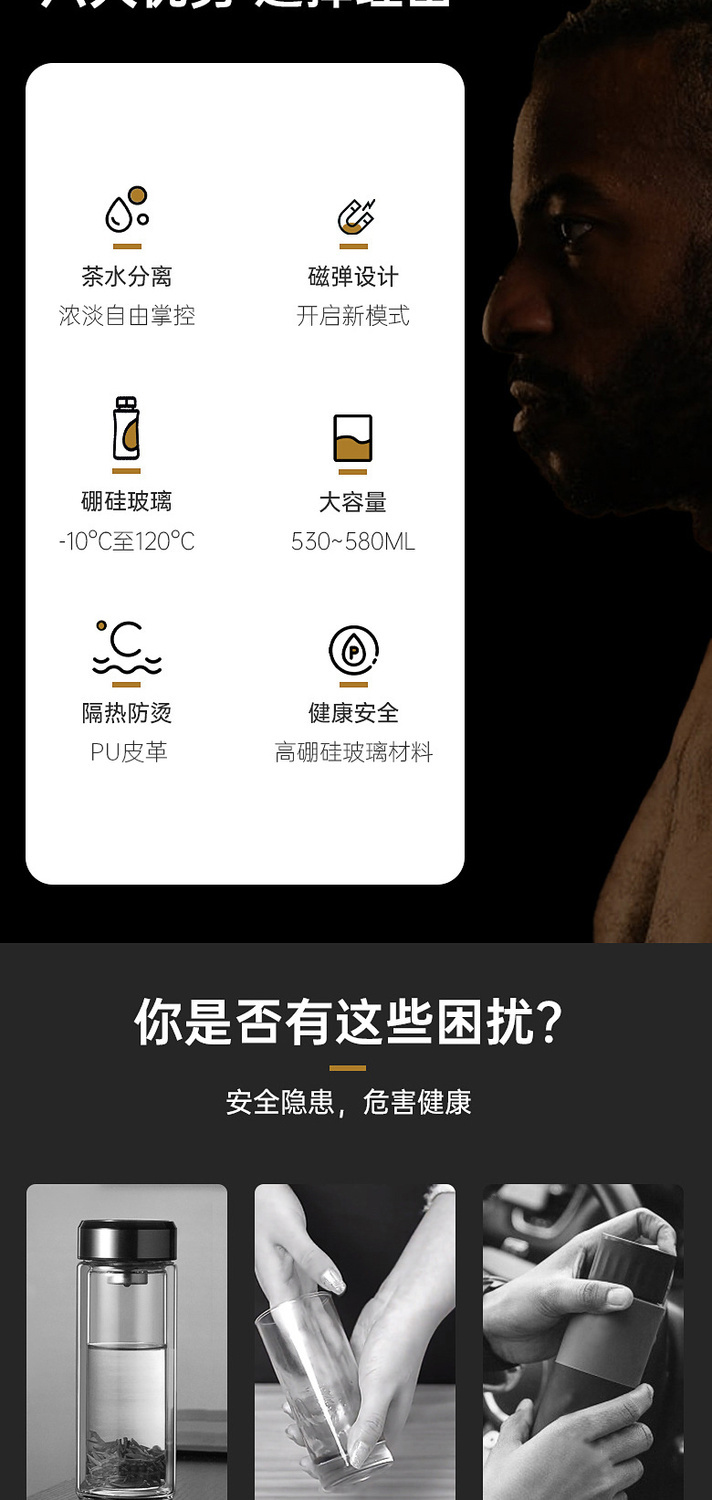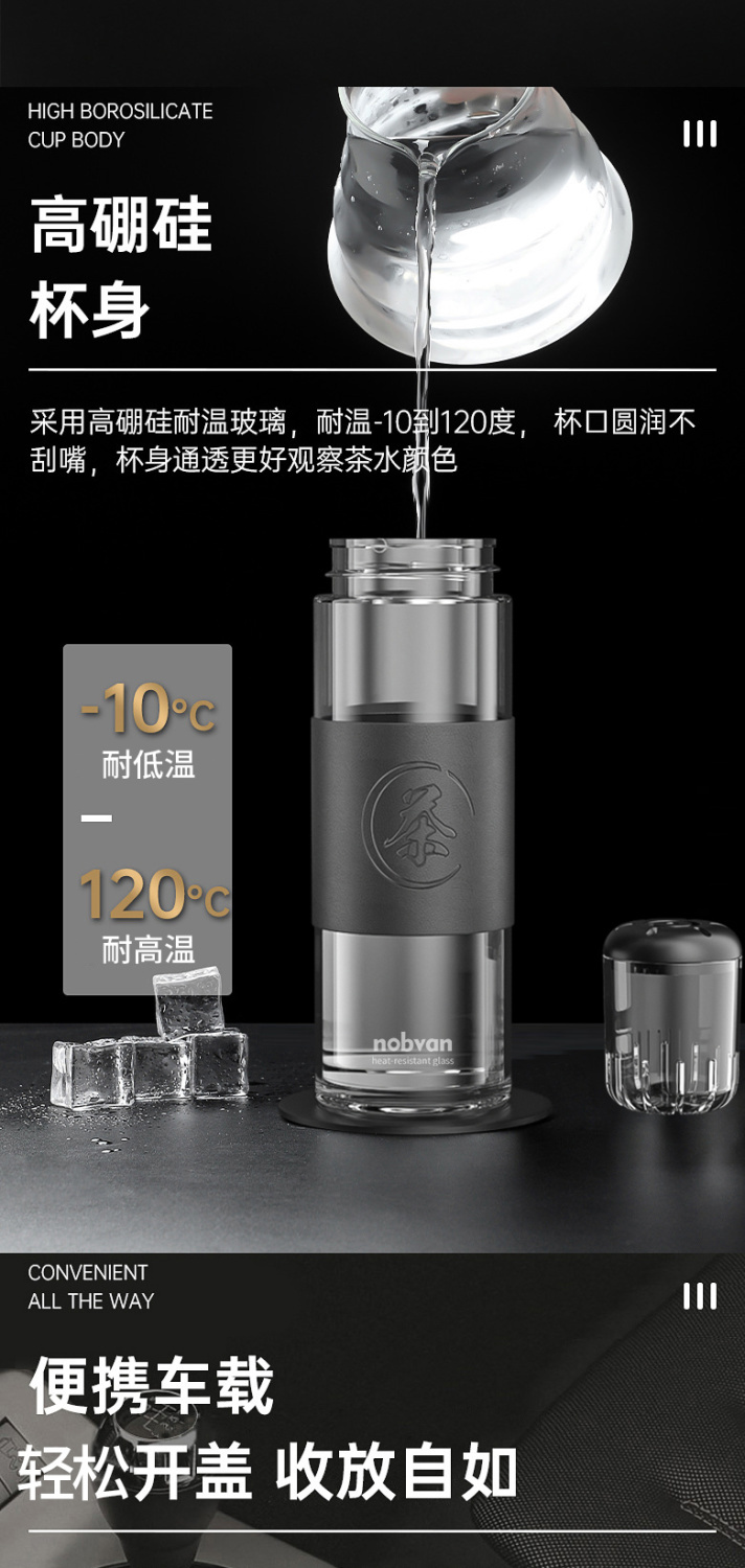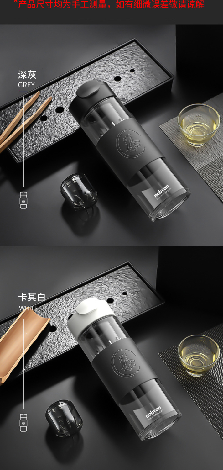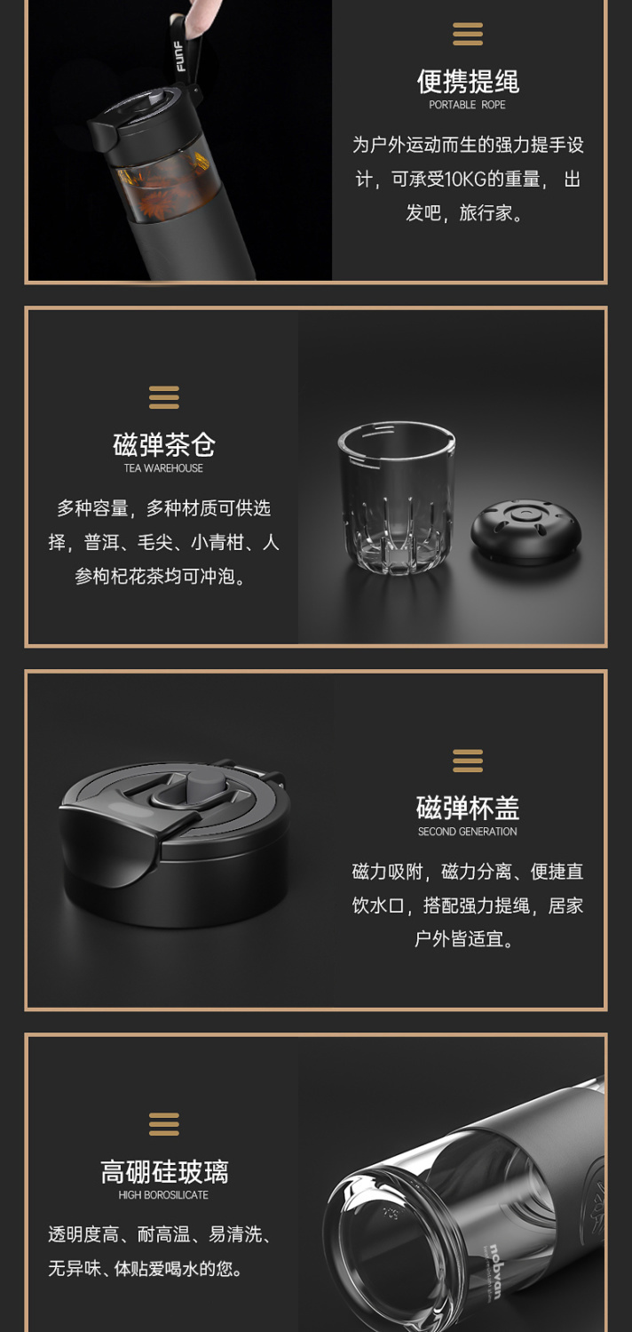 高级泡茶水杯茶水分离杯磁弹杯新款带提绳玻璃杯耐高温玻璃水杯
