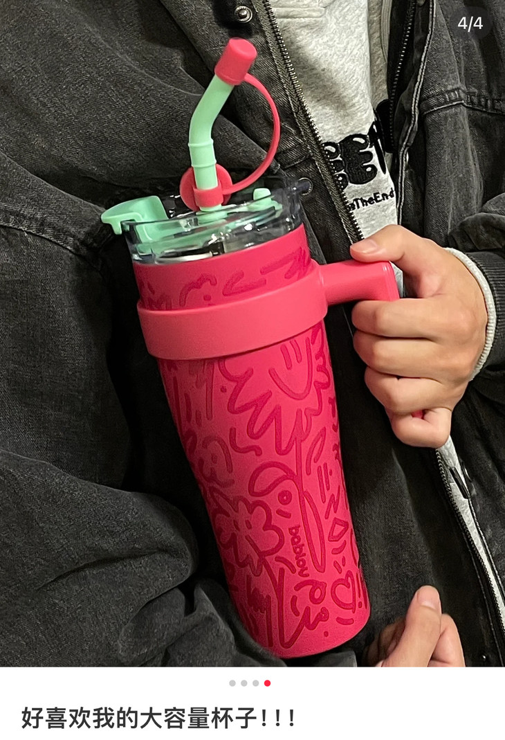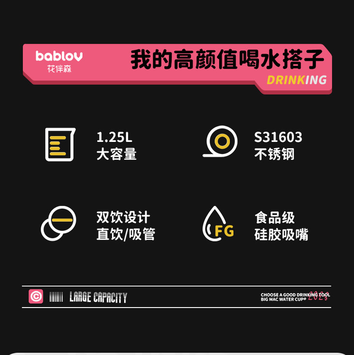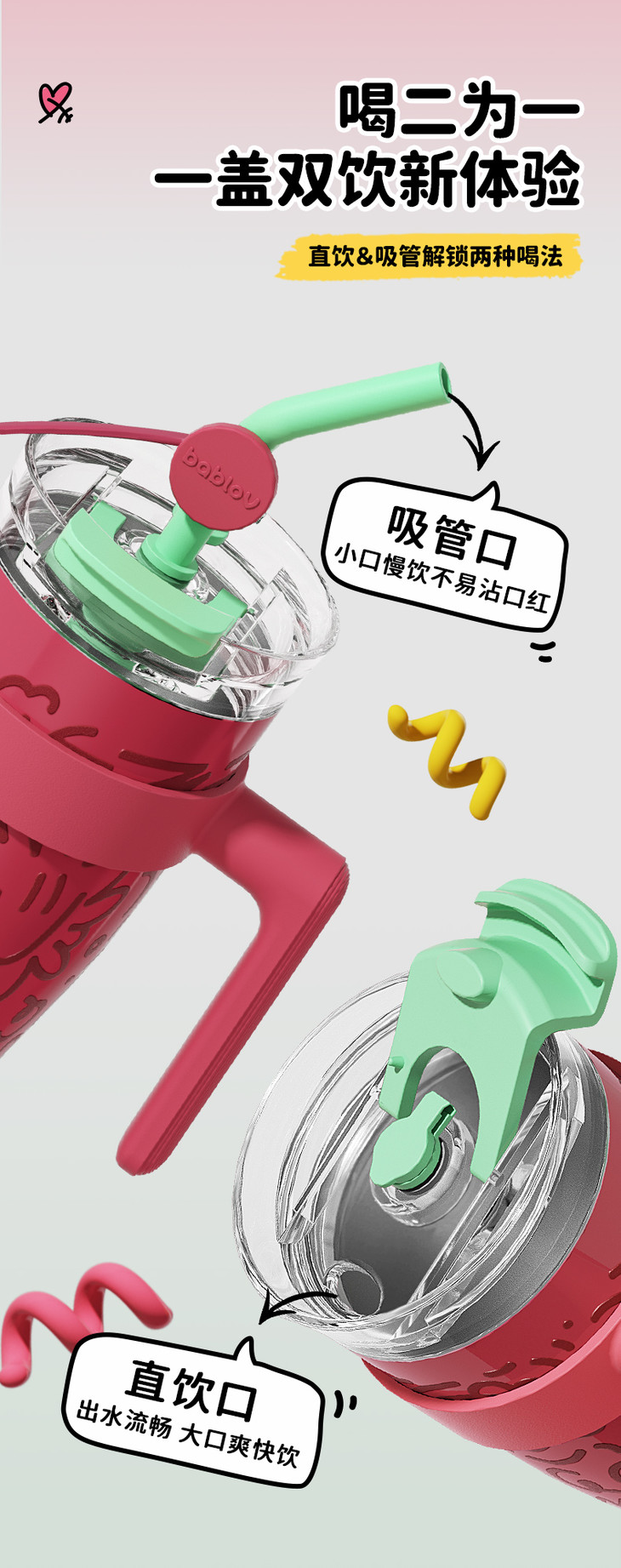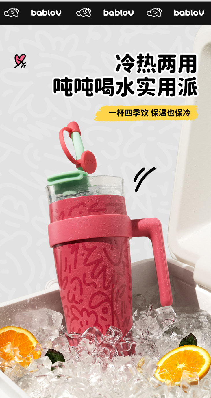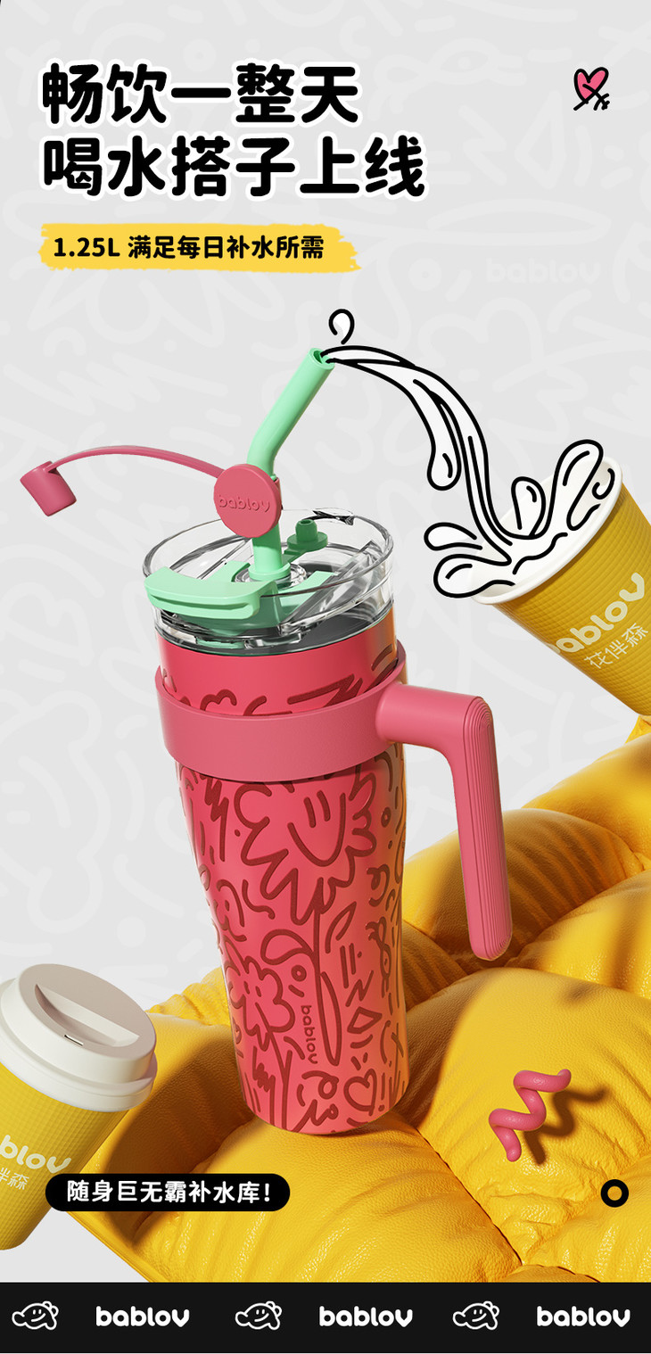 [屁侠推荐]bablov花伴森 1.25L大容量巨无霸保温杯 316不锈钢 吸管/直饮 花式双饮 保冷保热