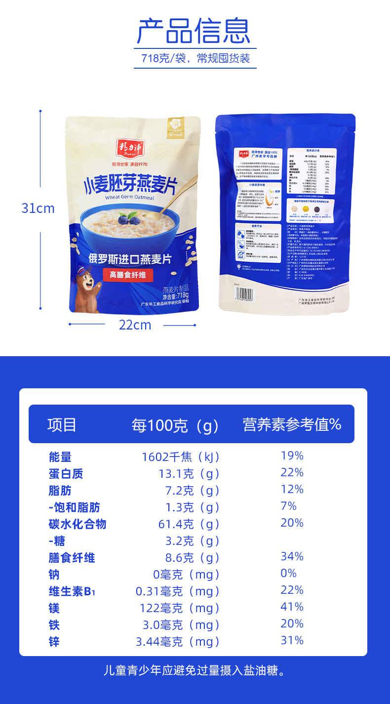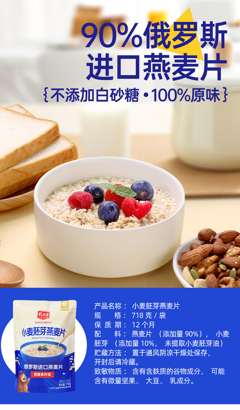 精力沛俄罗斯燕麦片原味无加蔗糖燕麦即食早餐谷物麦片718g