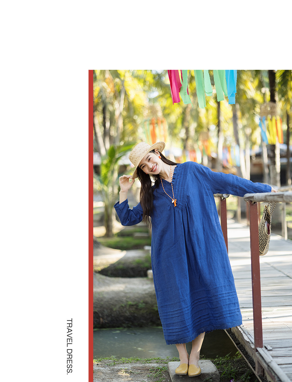以天然亚麻为载体,融合热烈色彩与自在剪裁为身在城市、心怀远方的女性提供兼具美学与舒适的旅行着装