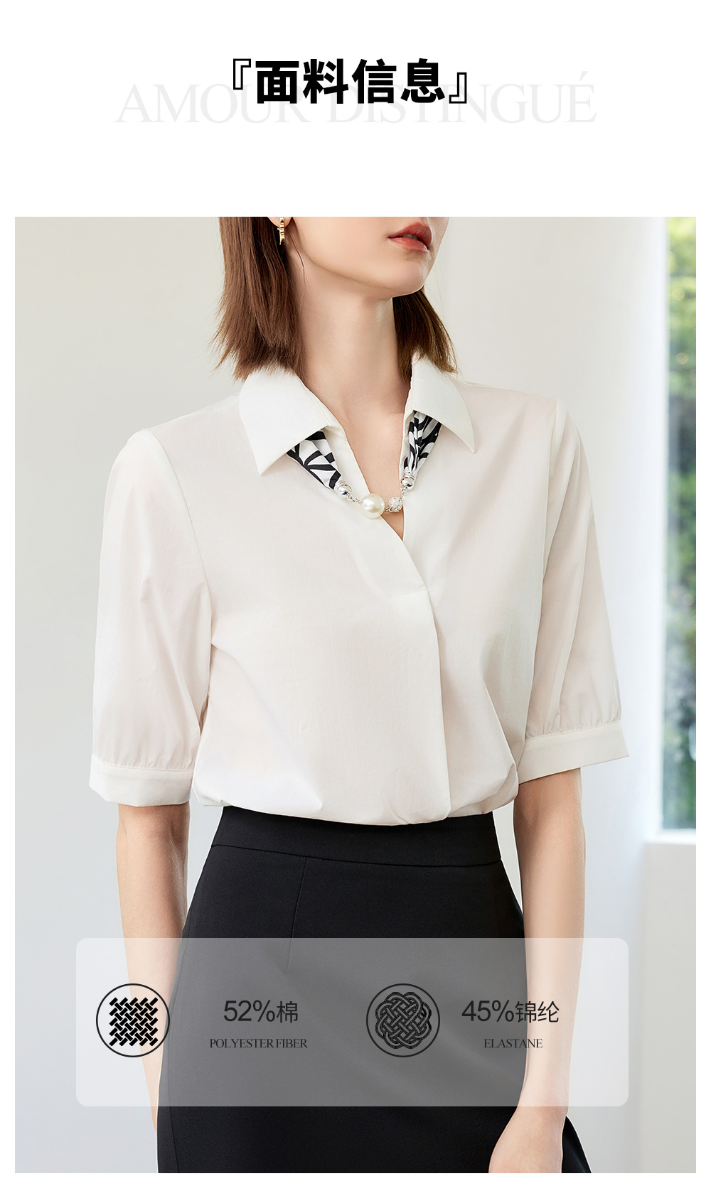 AD白色领结气质极简衬衫女2025新款休闲百搭通勤OL职业上班短袖