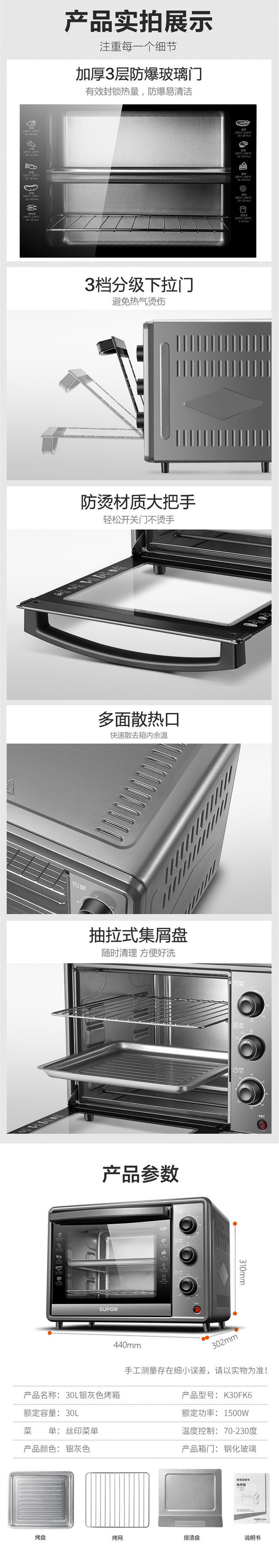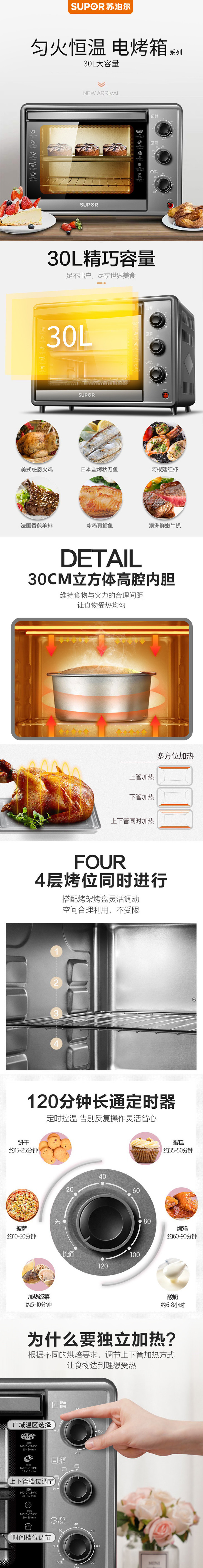 苏泊尔(SUPOR) K30FK6 多功能电烤箱 30升 1500W 匀火恒温 多功能