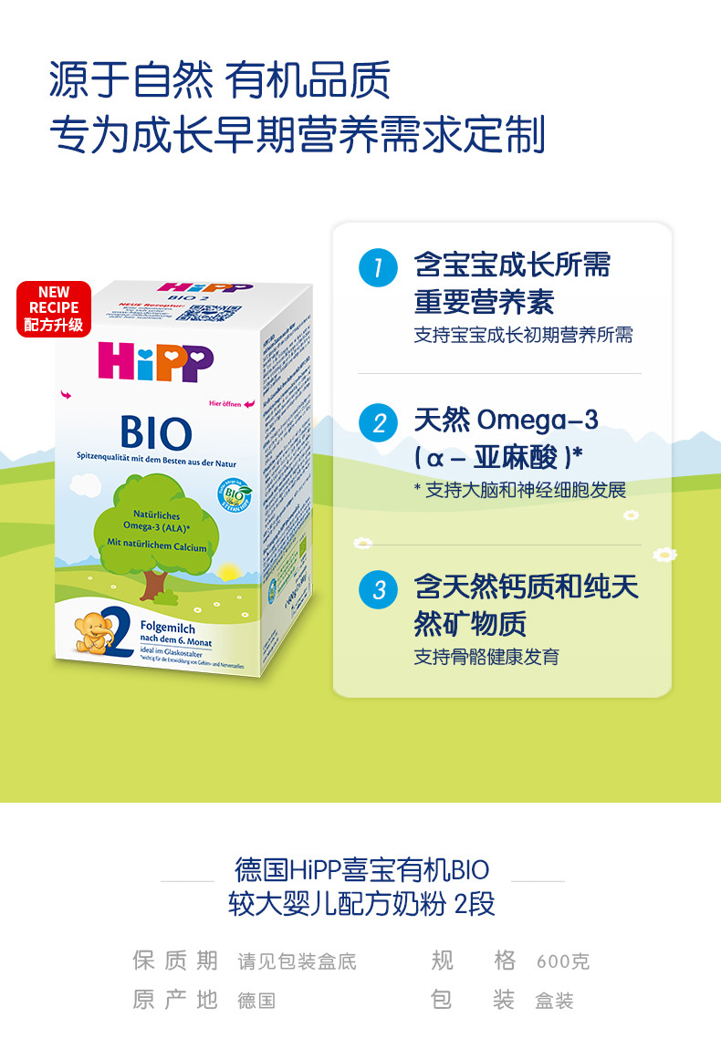 【保税仓】德国喜宝Hipp有机2段 600g(新包装)