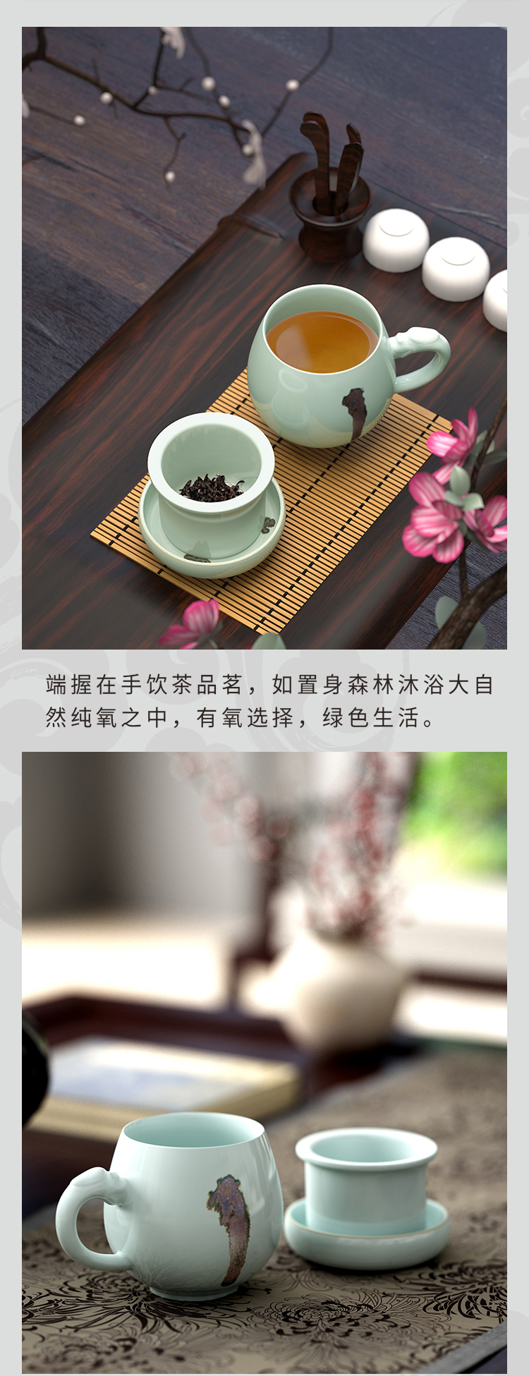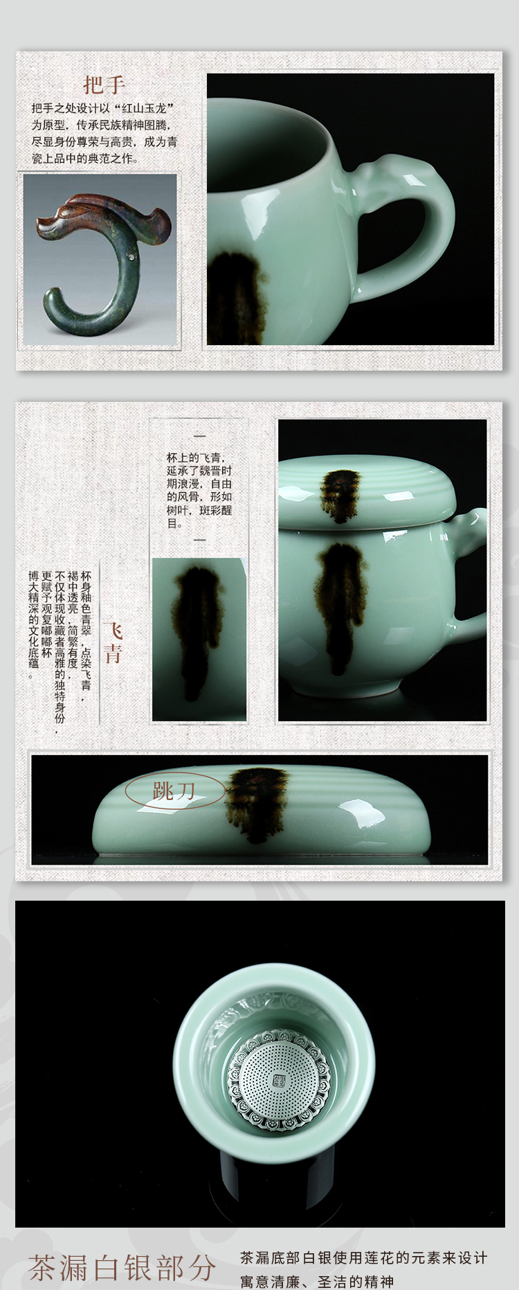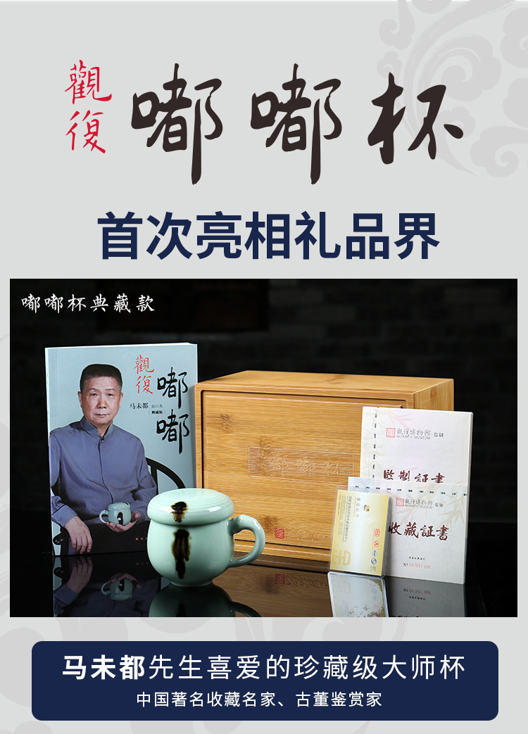 清朴堂 观复嘟嘟杯 龙泉青瓷茶杯陶瓷纯银滤办公杯 观复博物馆马未都同款 典藏版