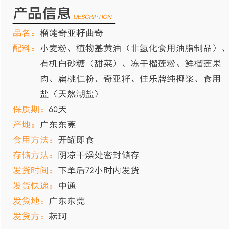 耘珂榴莲曲奇 零食饼干 400g/罐
