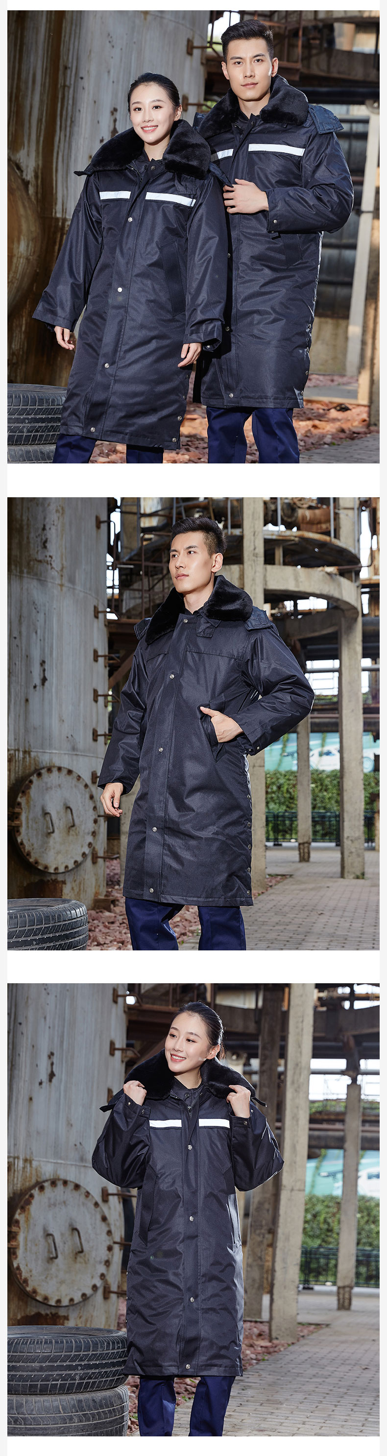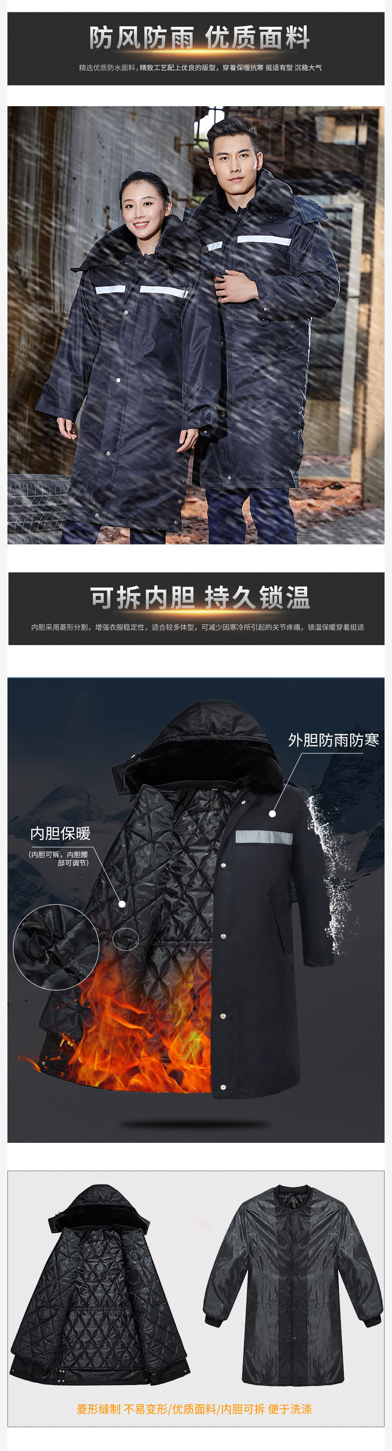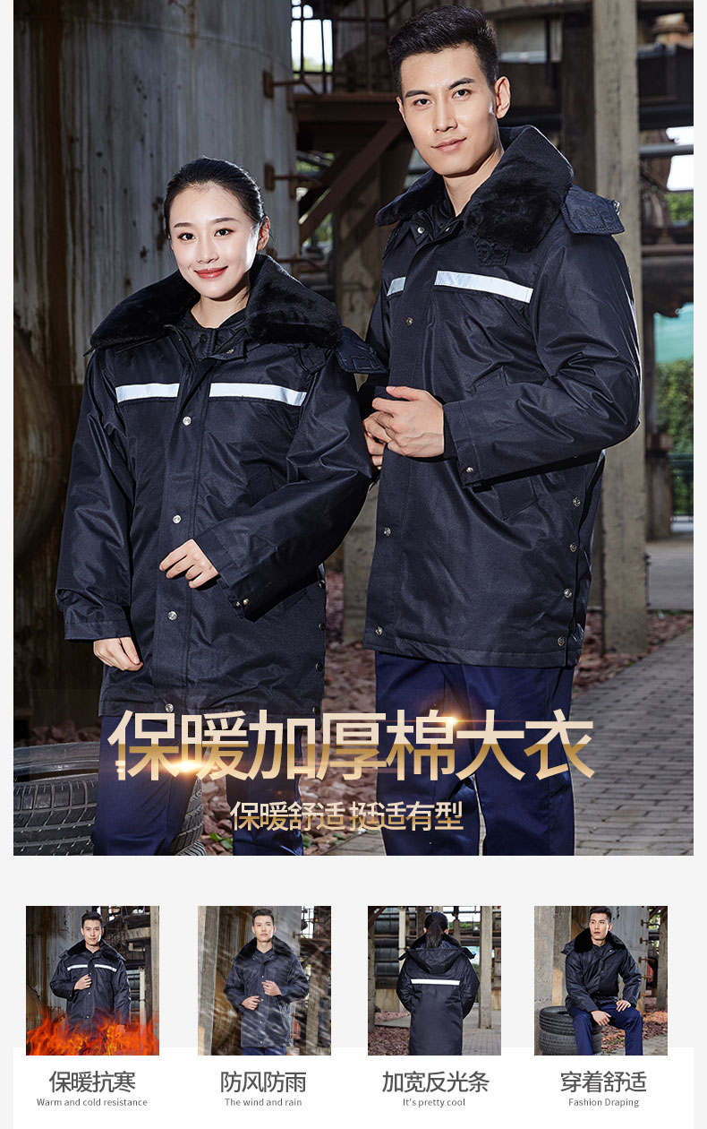 梵可梵保安服冬季保安大衣棉服棉袄防寒服加长加厚反光条工作服