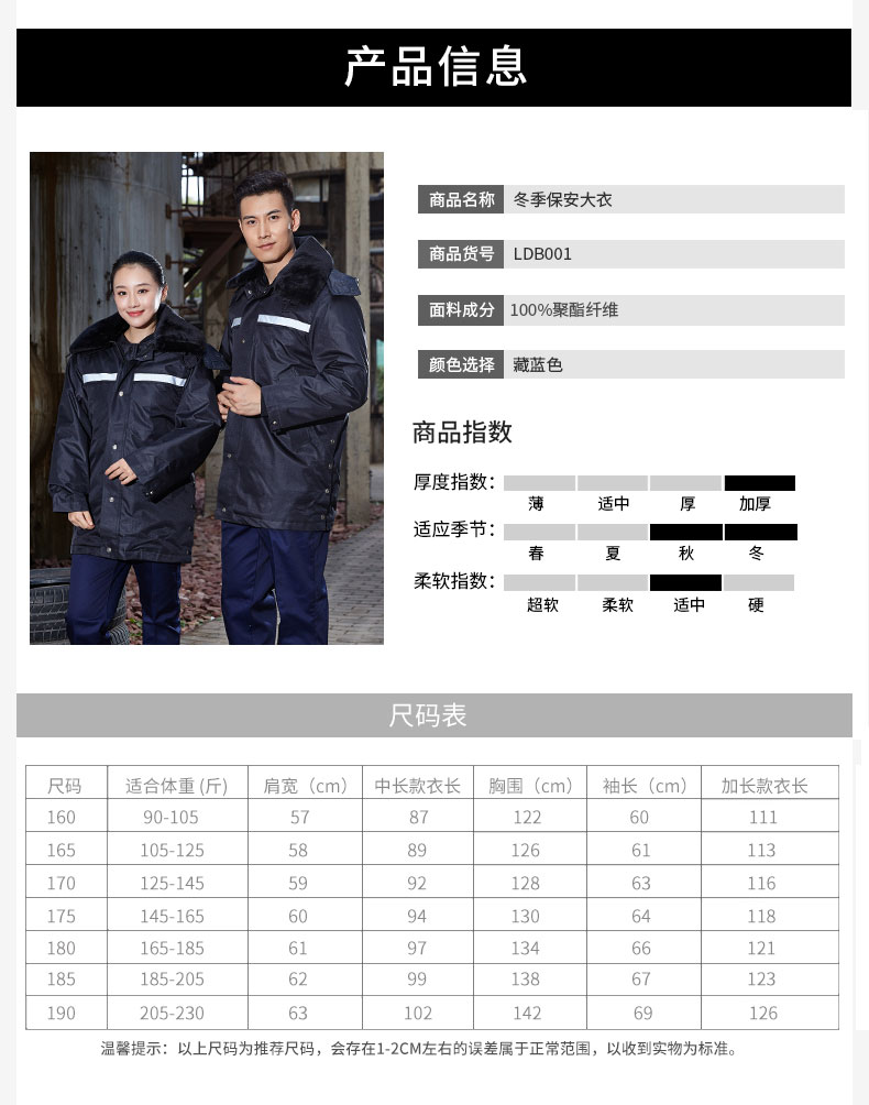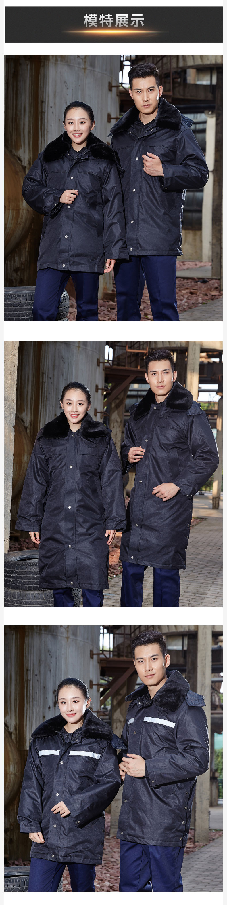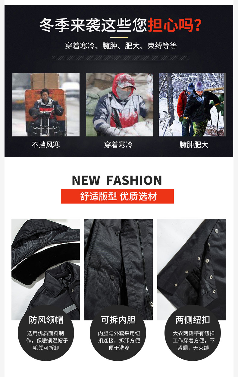 梵可梵保安服冬季保安大衣棉服棉袄防寒服加长加厚反光条工作服