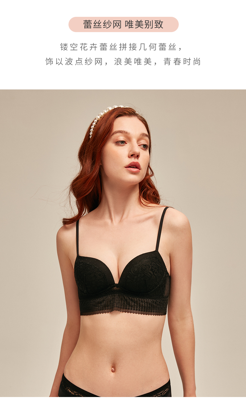 雅黛俪内衣女聚拢舒适无钢圈薄杯性感美背抹胸文胸蕾丝上托胸罩女