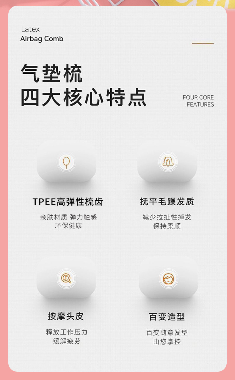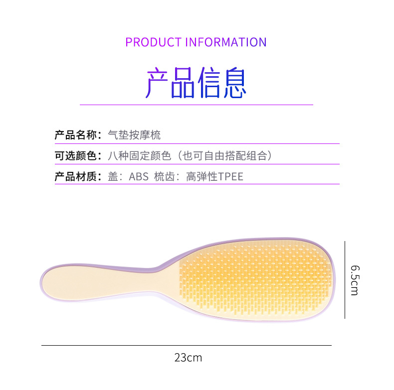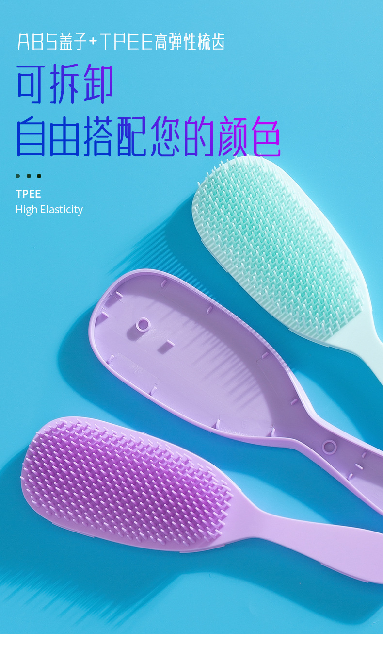 【可拆卸❗️弹力气垫梳】源自梳齿高弹材料,梳齿整体弹力可拆卸,气垫按摩不拉扯,抚顺直发不毛躁,不打结蓬松按摩梳家用排骨梳美发顺发梳子QQ