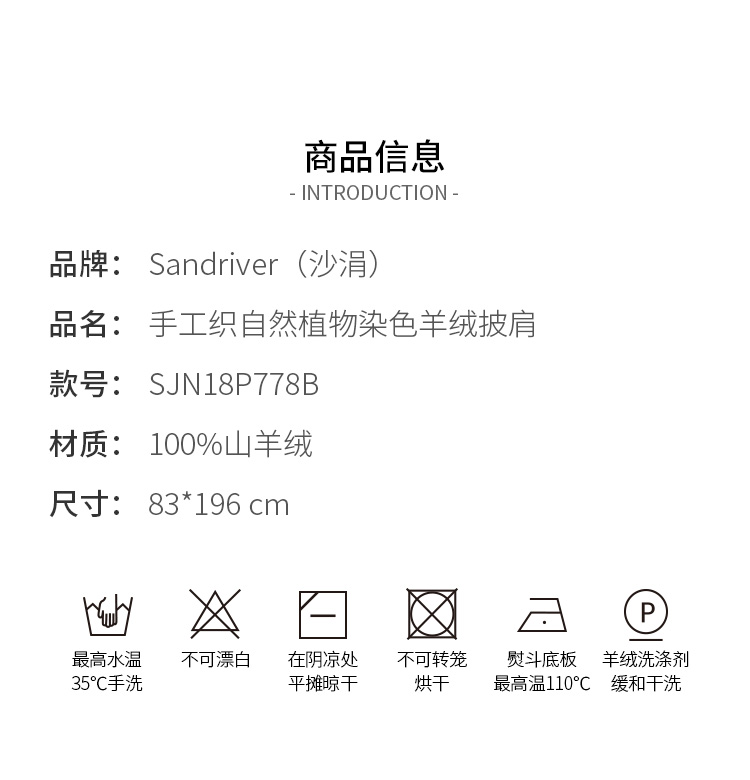 历年在巴黎时装周亮相,享誉世界的艺术羊绒品牌[Sandriver 沙涓]由羊绒布道者郭秀玲女士创立。阿拉善自有牧场纯种羔羊绒,日本国宝设计师小筱顺子,上海自有基地精工细作。承载羊绒情怀,坚持匠人品质。