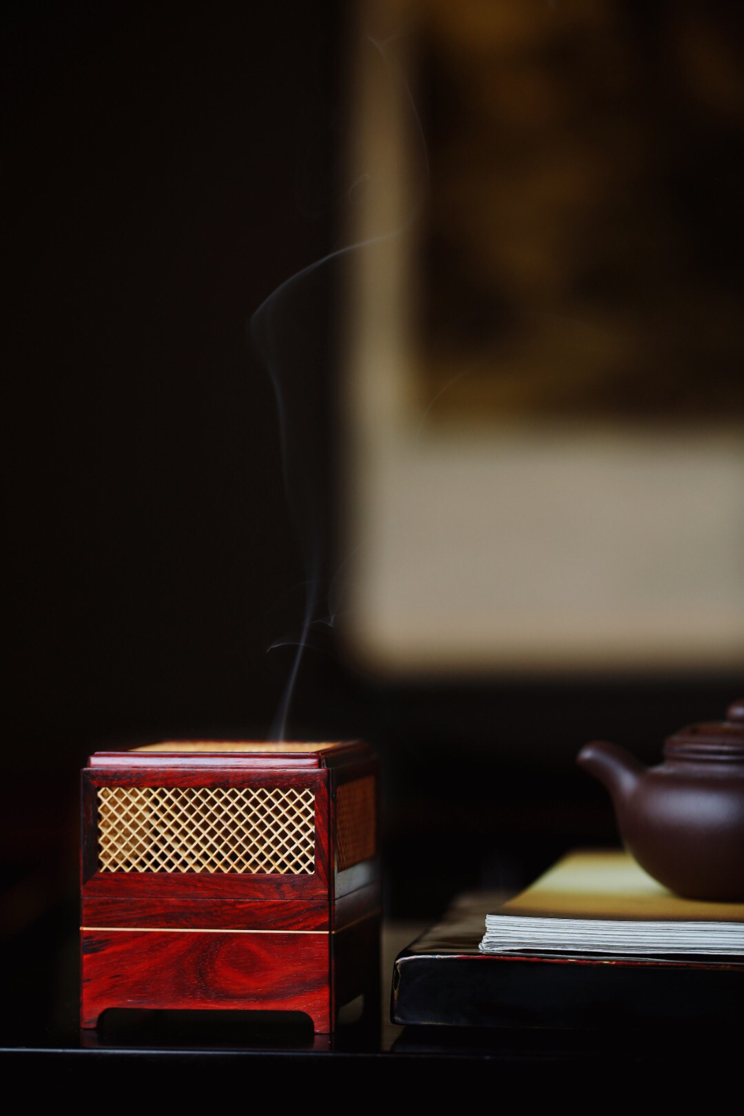 空间陈设,烟云缭绕,文雅非常。