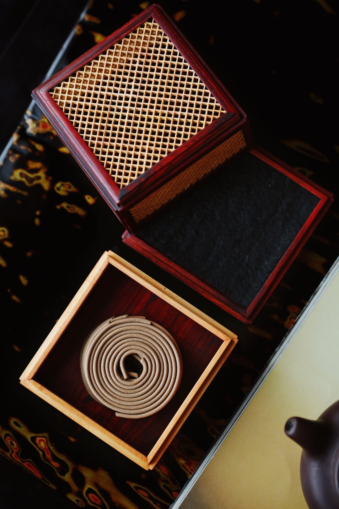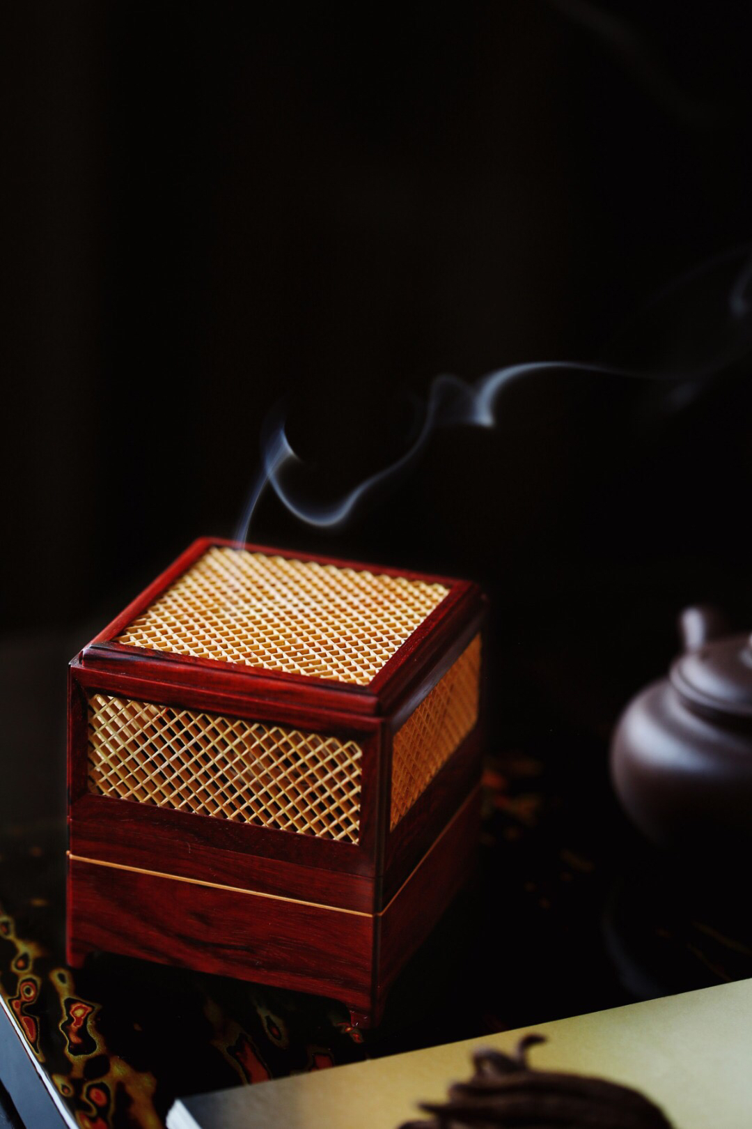 【青山特惠】小叶紫檀+黄杨木 双层【梵影】盘香炉 b7