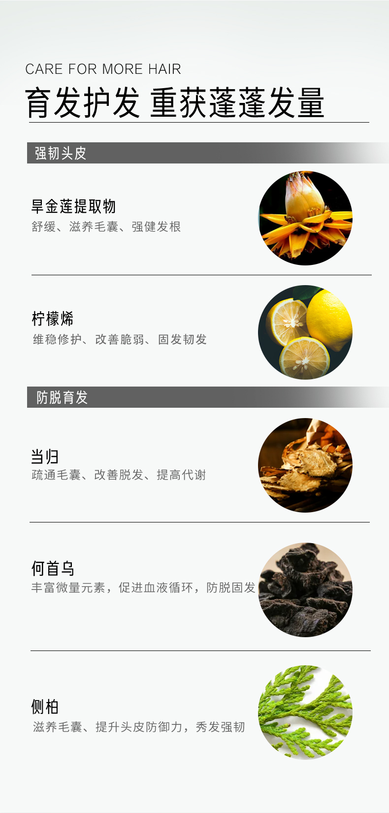 添加了调理毛囊头皮的何首乌提取物和侧柏提取物