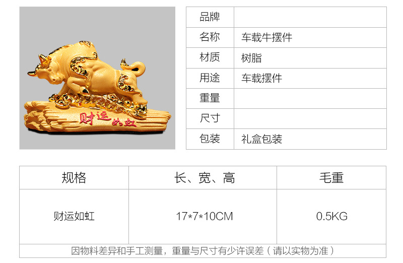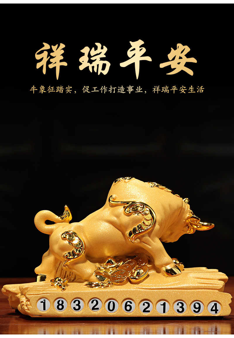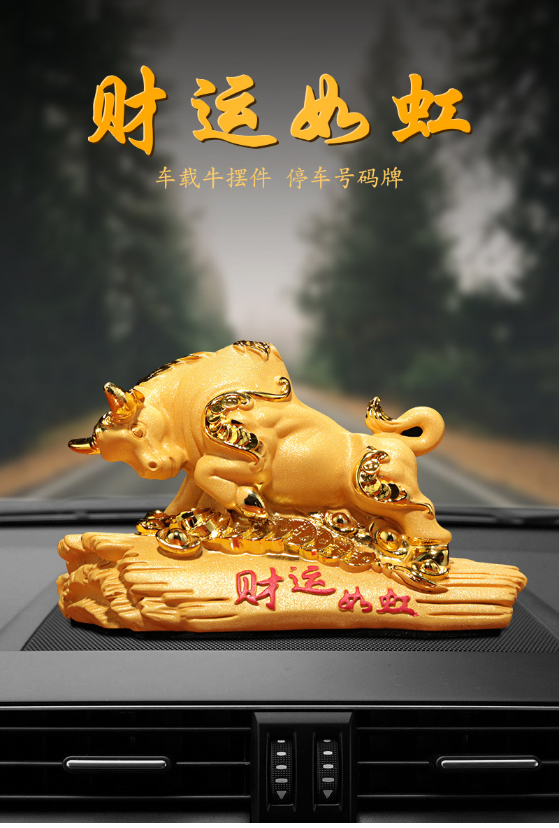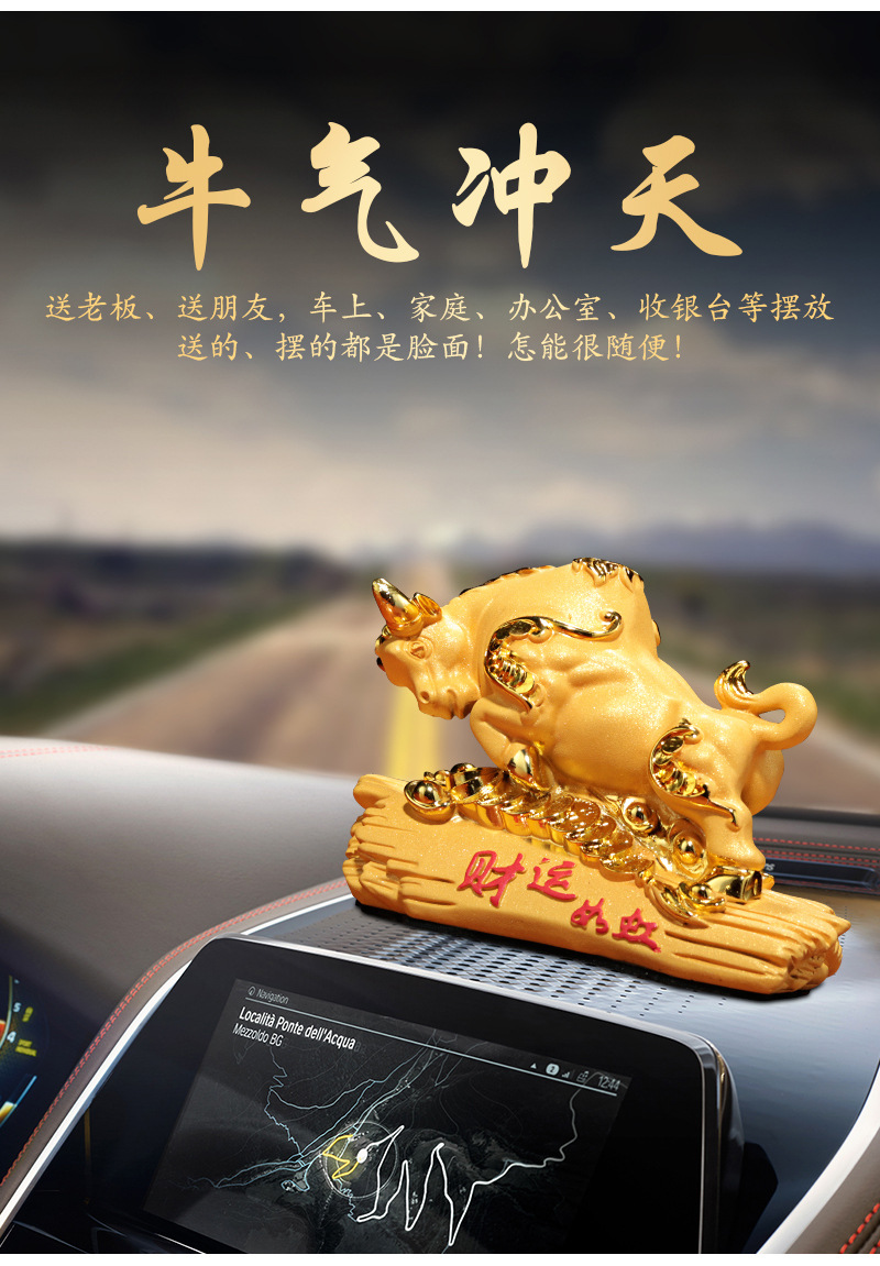 <有书独家>【家居摆件】创意牛摆件汽车用品招财纳福金牛牛气冲天装饰品树脂工艺品