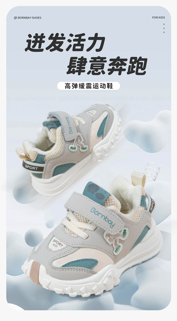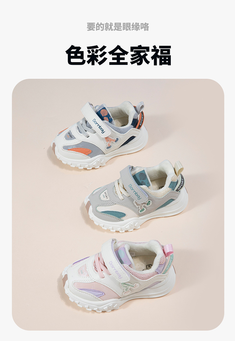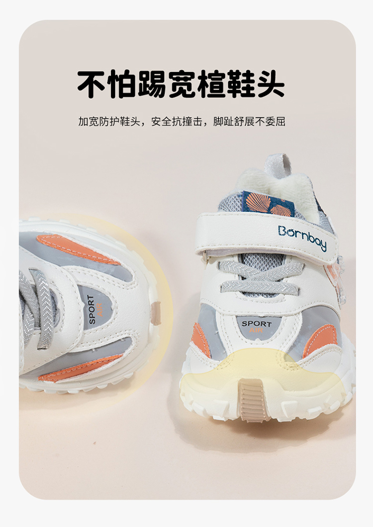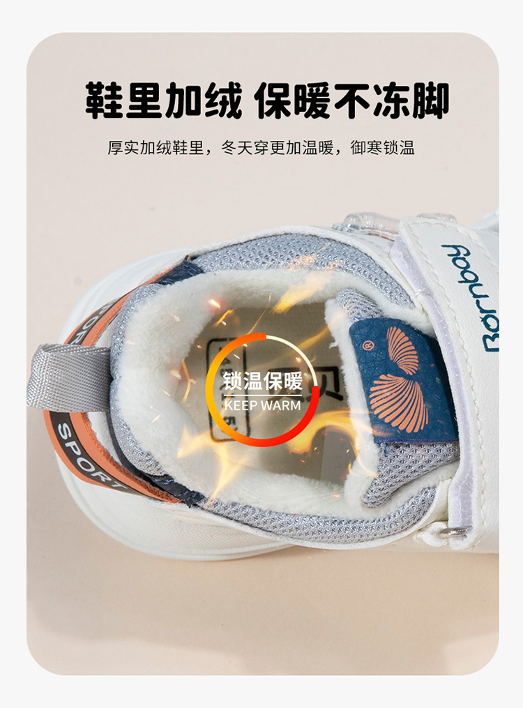 贝贝怡儿童休闲运动鞋冬季加绒保暖男童板鞋小童一脚蹬跑步鞋ZB4CX011