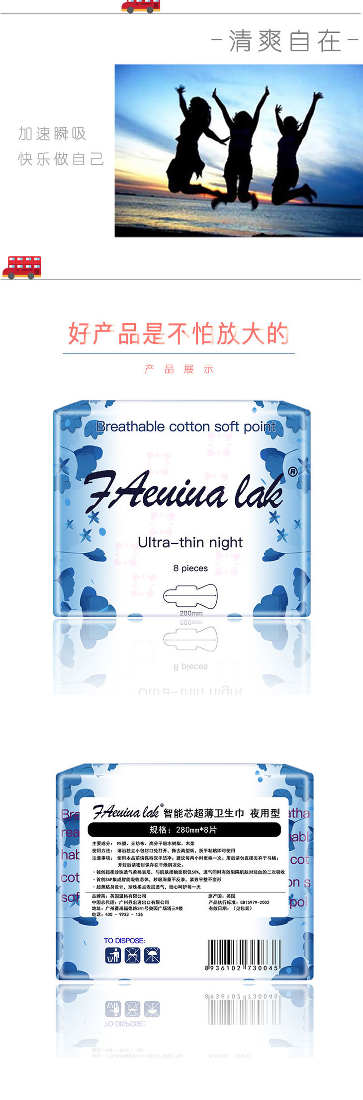 花缪蕾Faeuiua lak超薄夜用卫生巾280mm(21001028)【21001028】