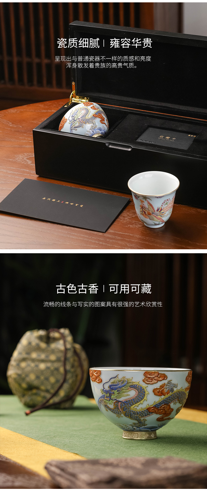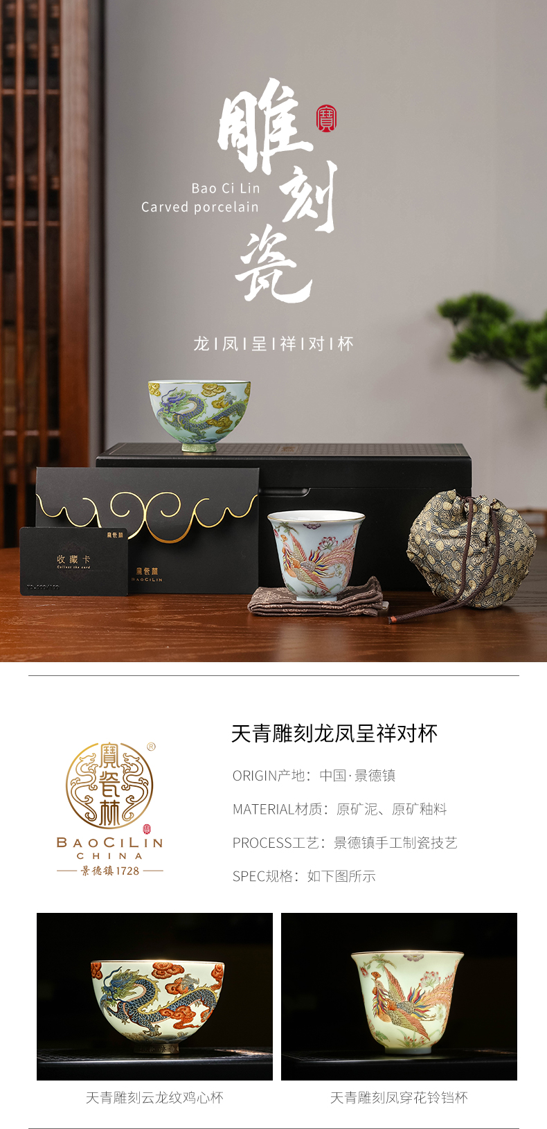 【宝】天青雕刻龙凤呈祥对杯限量款产品可选编号