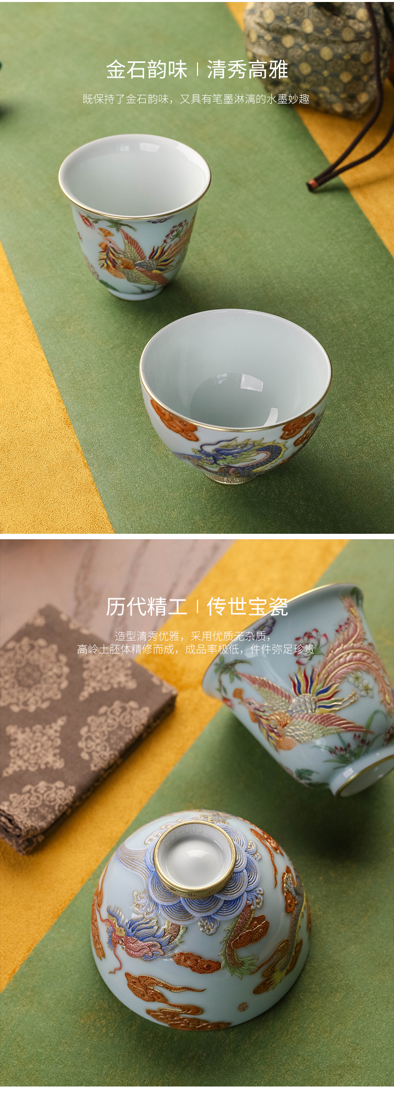 【宝瓷林】天青 豆青 明黄 祭蓝蹲式杯 紫金玉兰杯10头茶具
