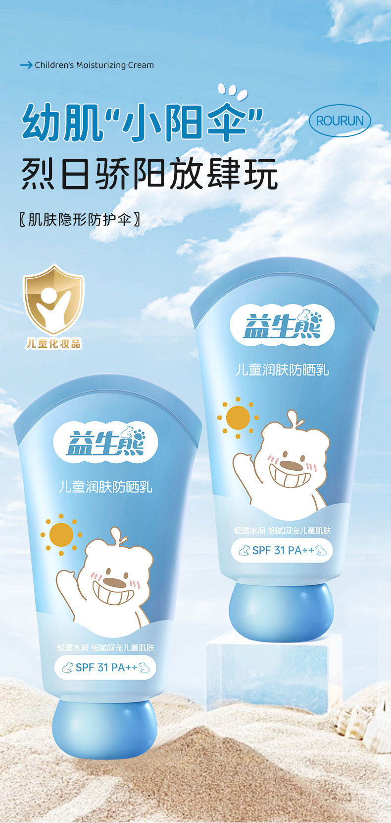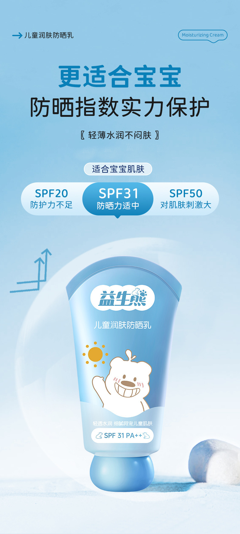 【儿童专研❗️益生熊儿童润肤防晒霜】国妆特字SPF31++,肌肤隐形防护“雨伞”,烈日骄阳放肆玩!清爽不油腻防紫外线防晒霜