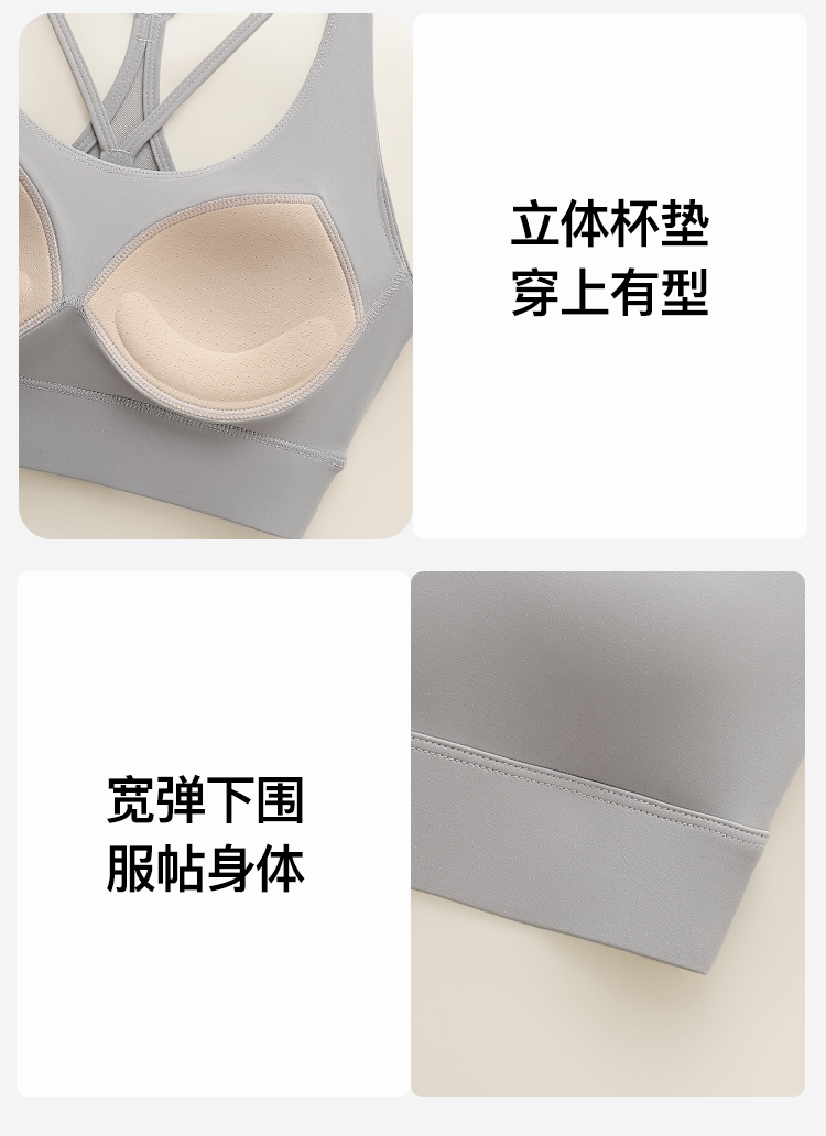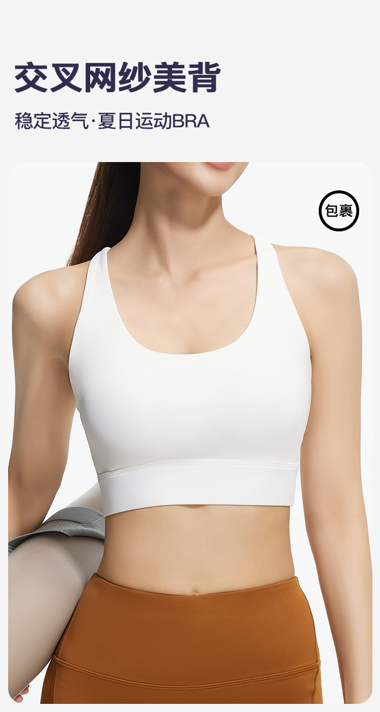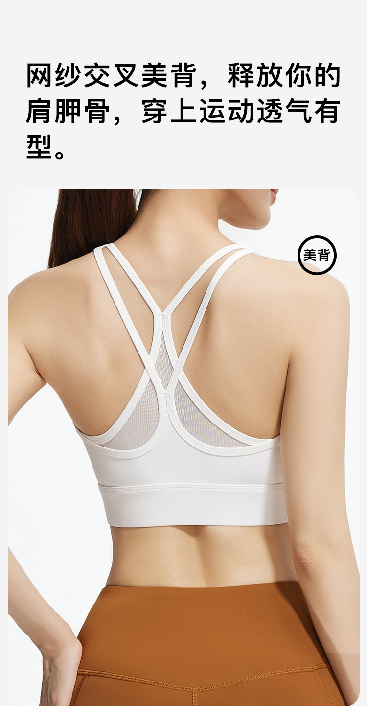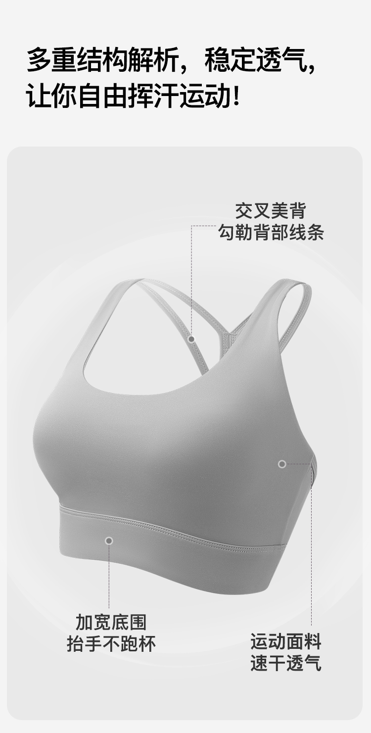中高强度运动缓震交叉美背瑜伽健身跑步运动内衣女外穿聚拢文胸玲珑运动