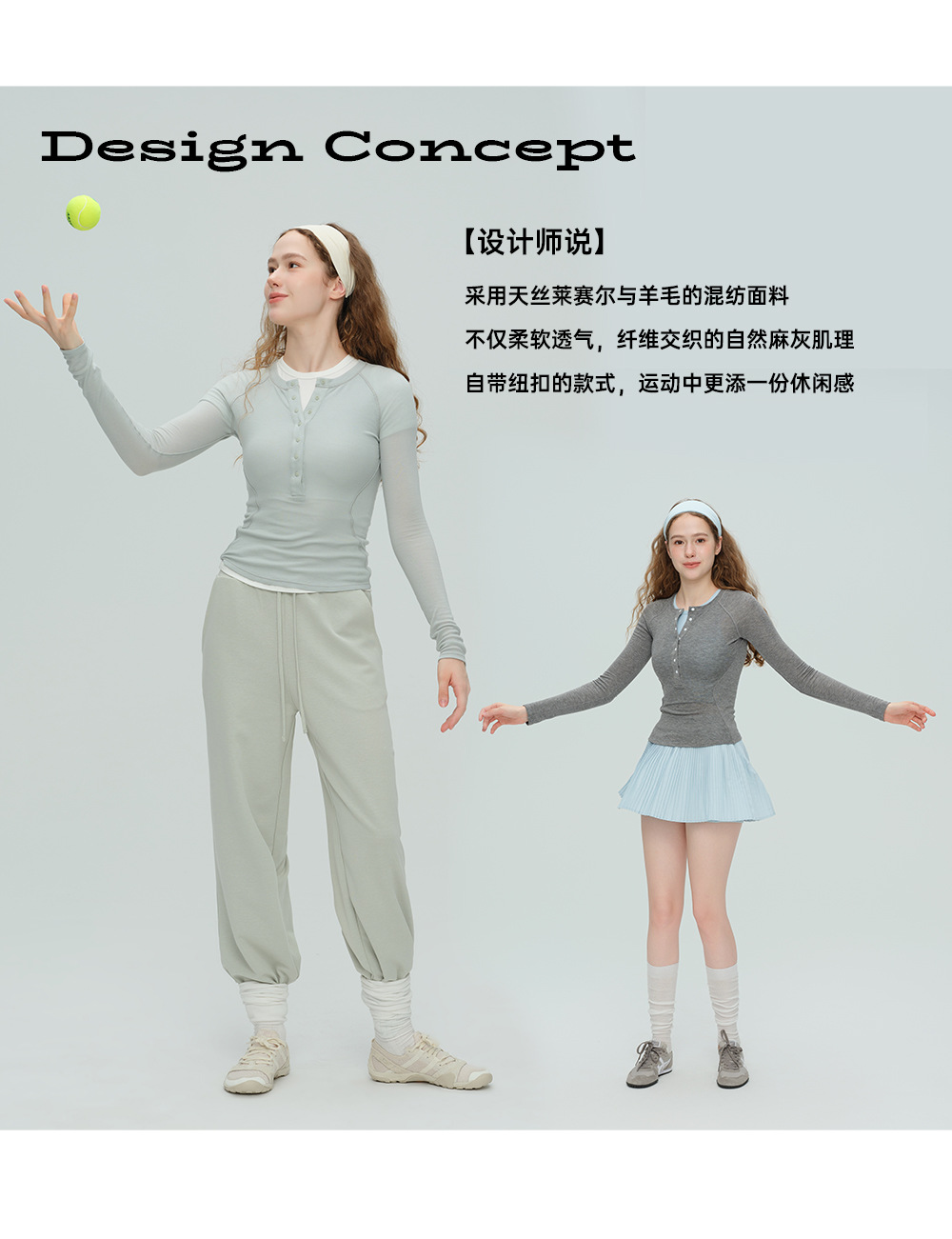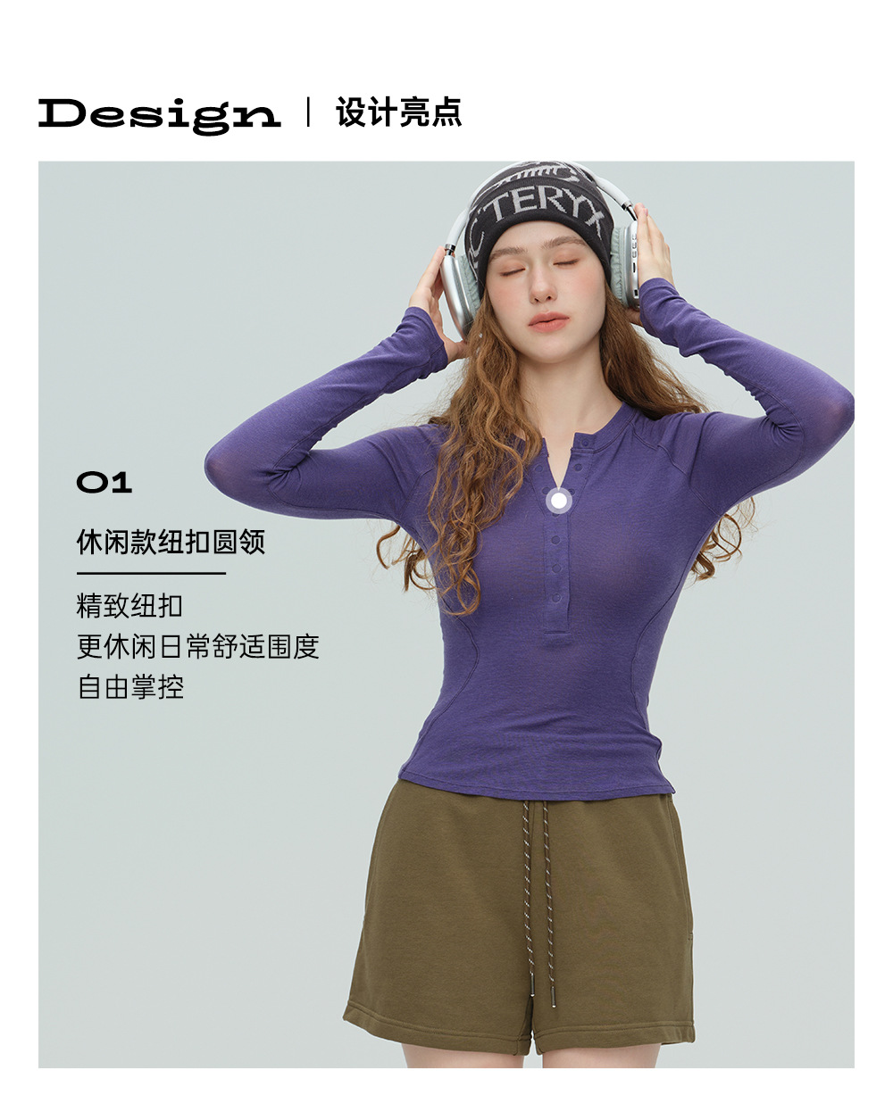 唤醒身心~天丝莱赛尔天奴丽丝羊毛运动瑜伽休闲纽扣健身长袖上衣 柔软有质感