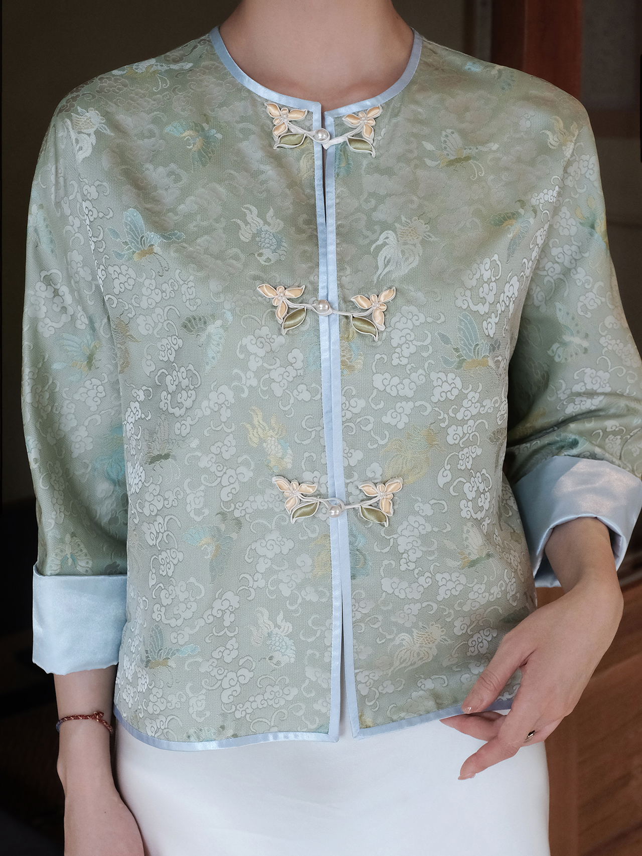 盛唐牡丹 |玉色/香槟金冠乐绉蝶恋花上衣