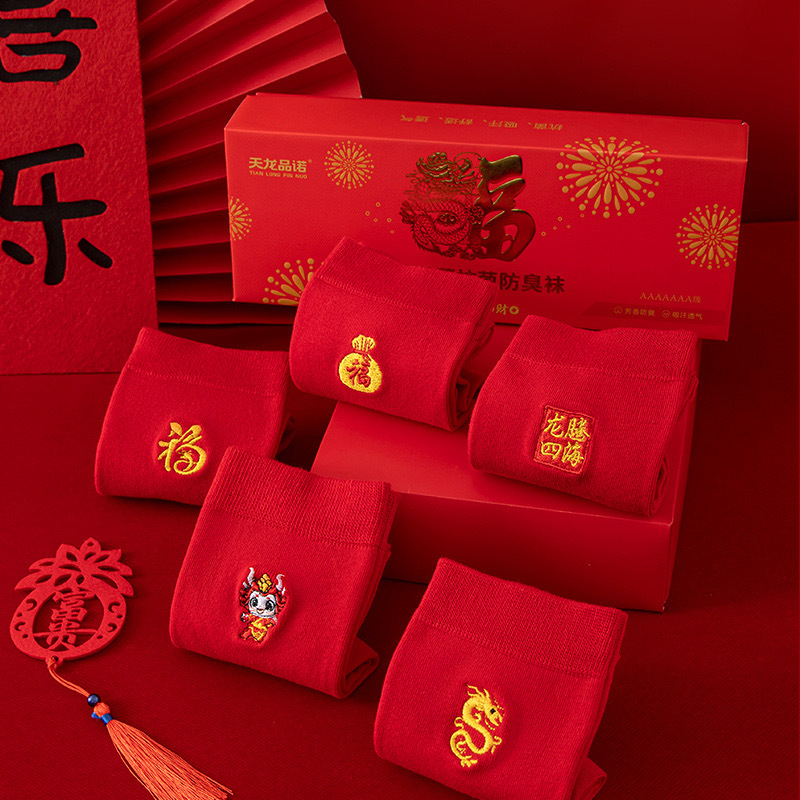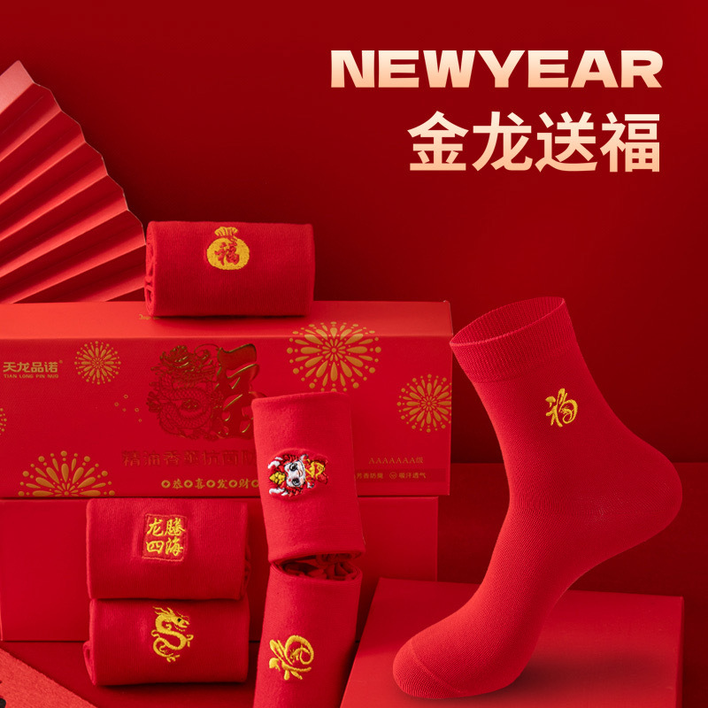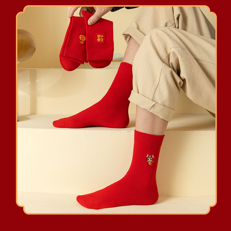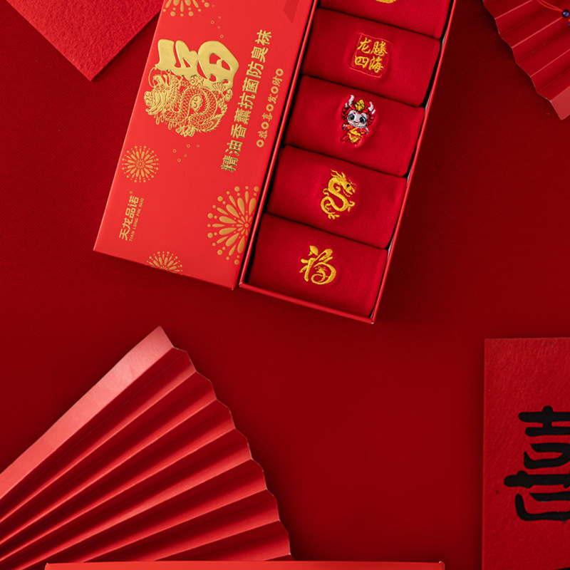 【马年限定❗️7A红袜礼盒套装】新年到,送红袜,穿上去,好运到。抗jun防臭刺绣棉袜精油香薰男女长袜子,父亲节礼物新年礼盒年货礼盒