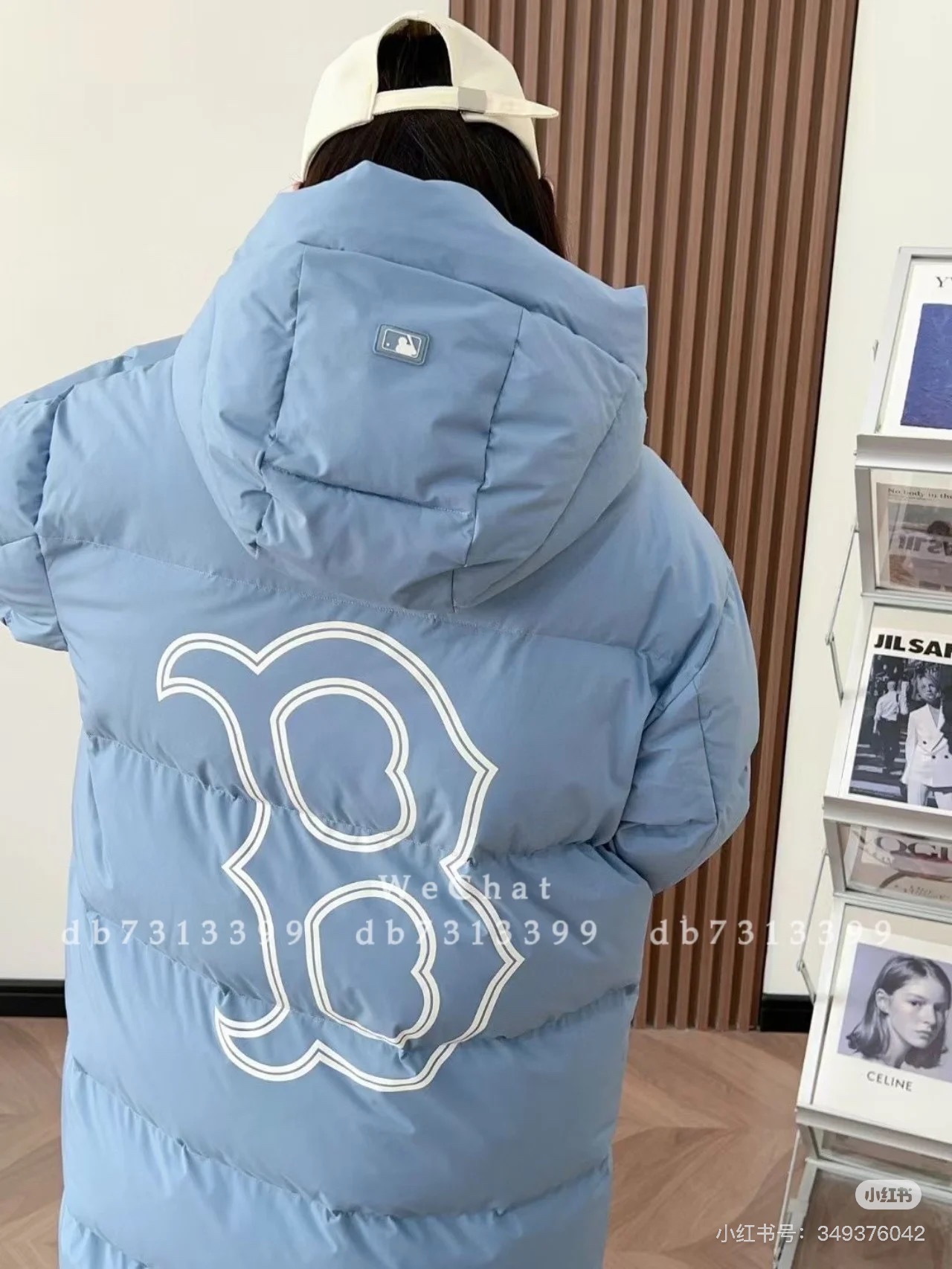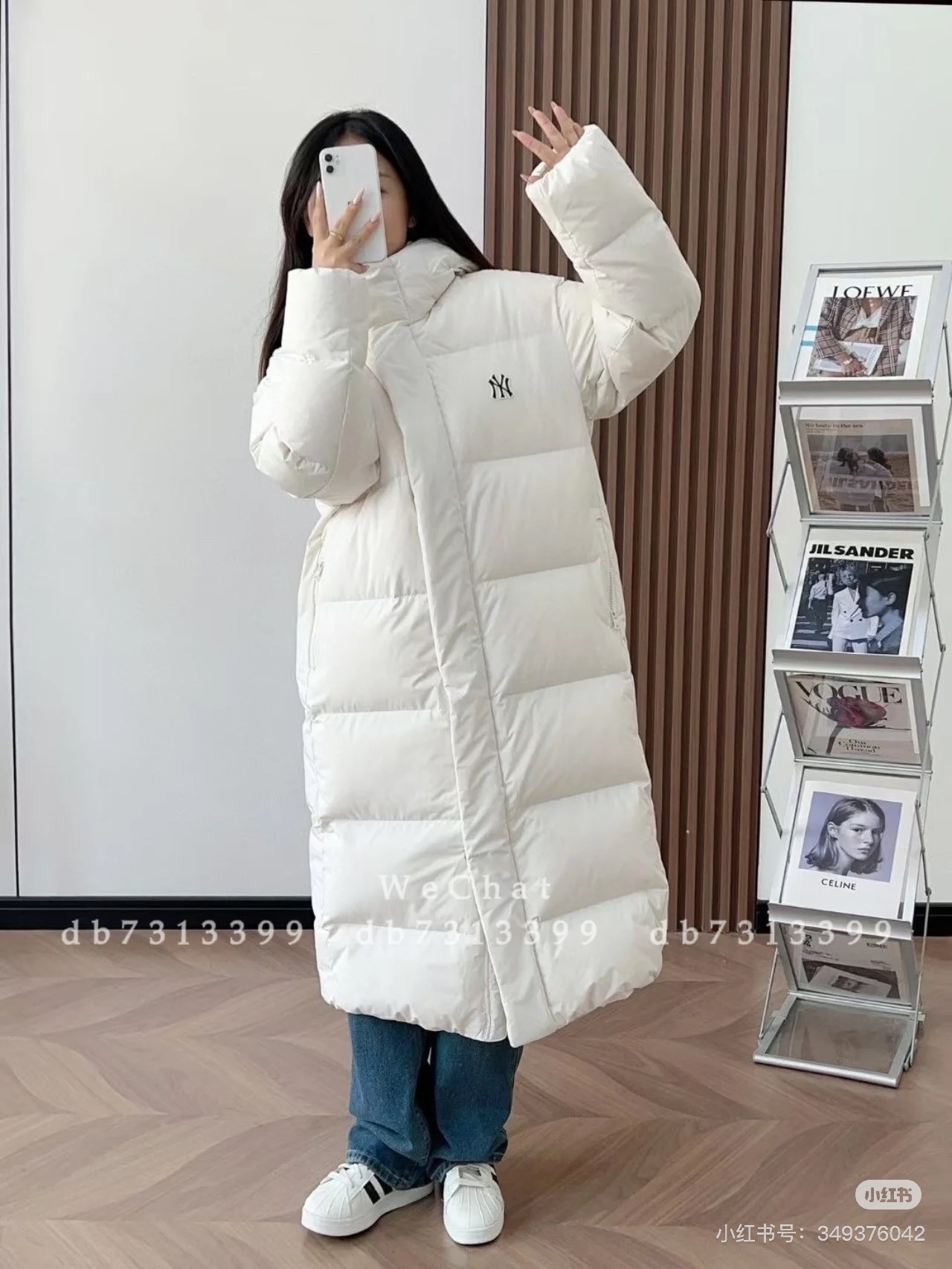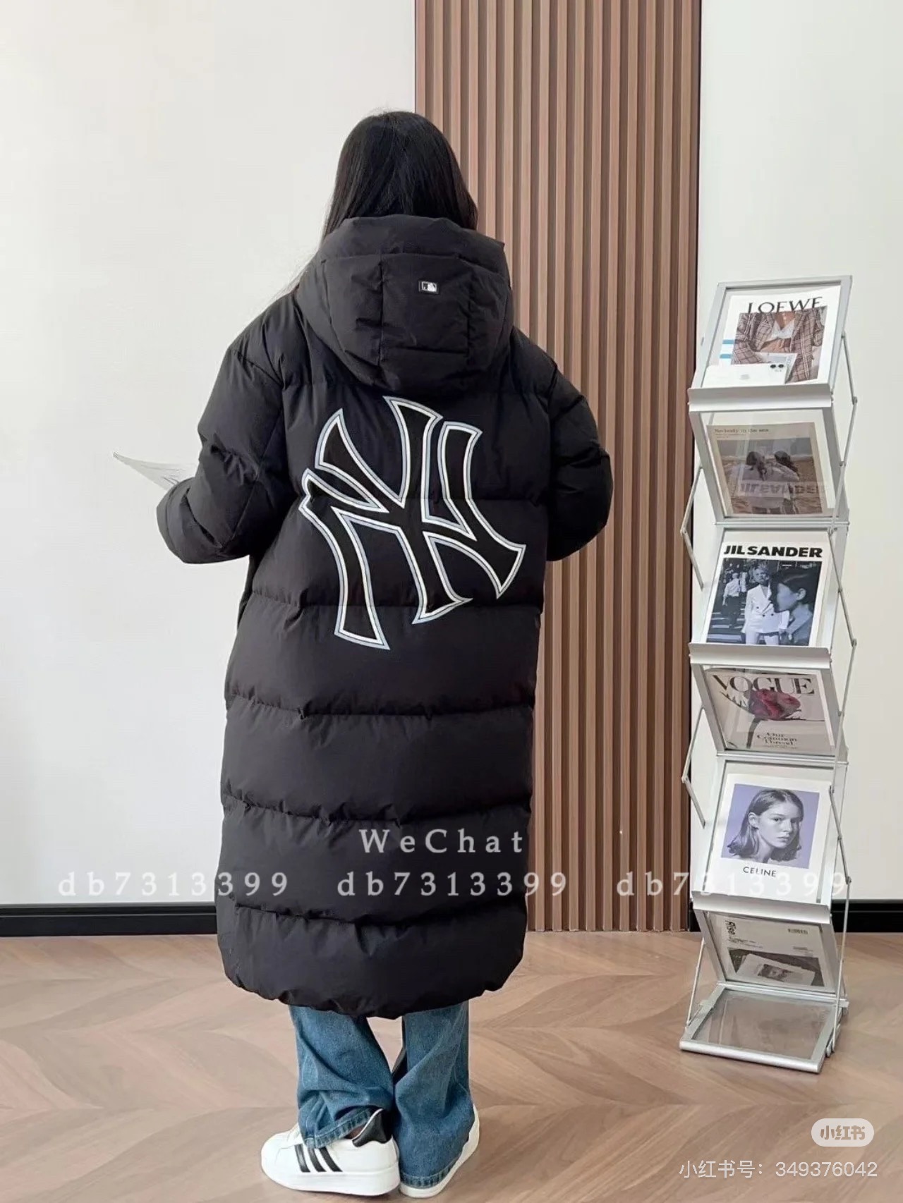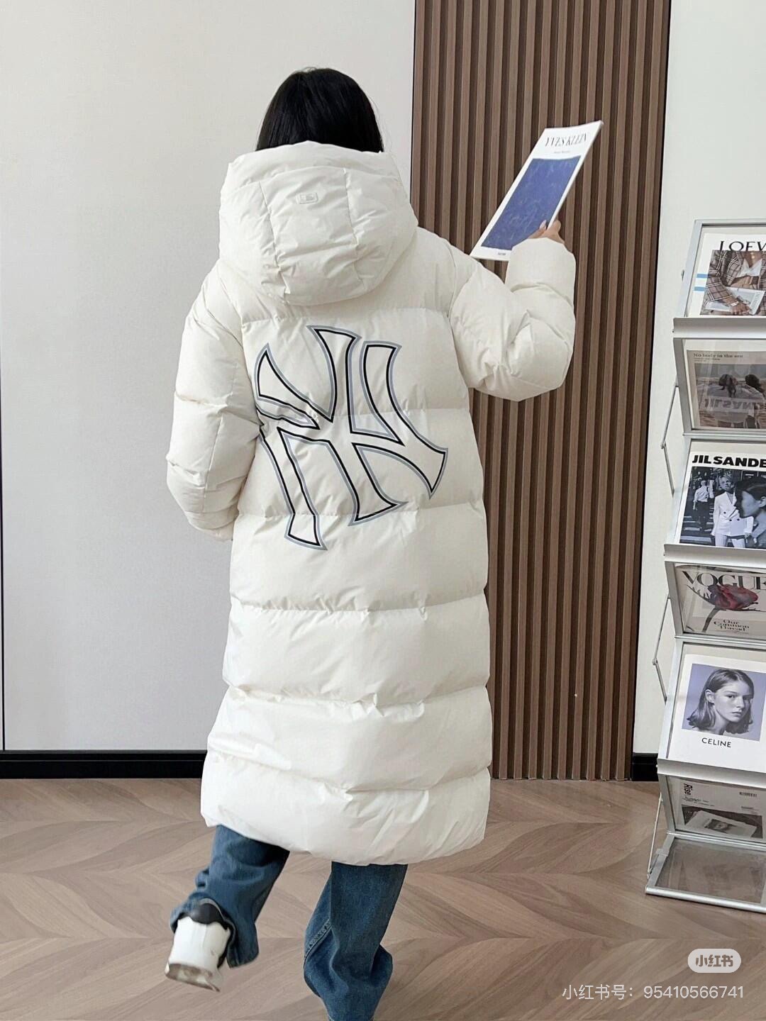 MLB/NY专柜同步情侣长款连帽后背NY大标羽绒服 24冬季新品NY洋基队【后背大标镂空】长款连帽羽绒服