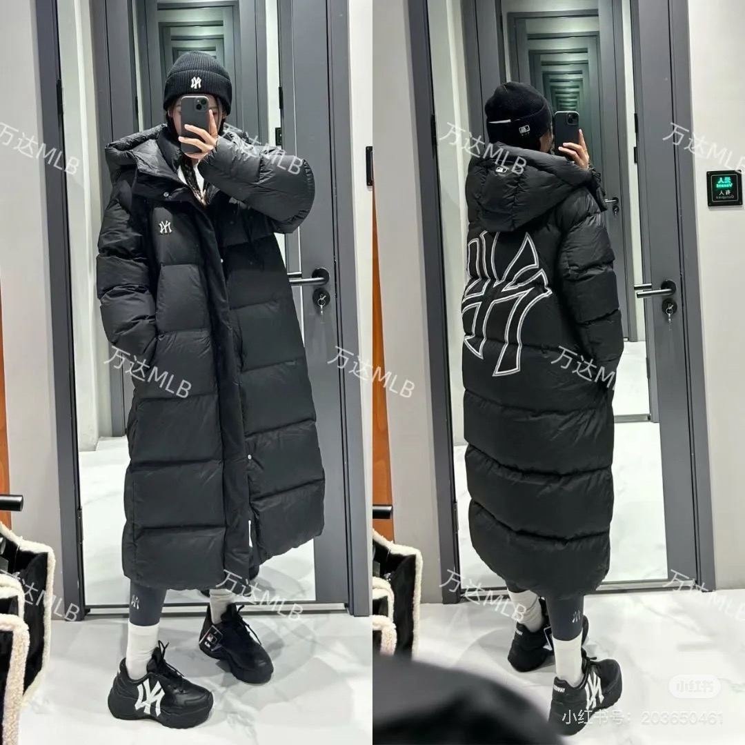 韩国MLB羽绒服长款连帽NY背大标 高品相~我们称它为~ 行走的大被子~2024冬季新款M家防风保暖刺绣标大被子情侣款长款休闲羽绒服
