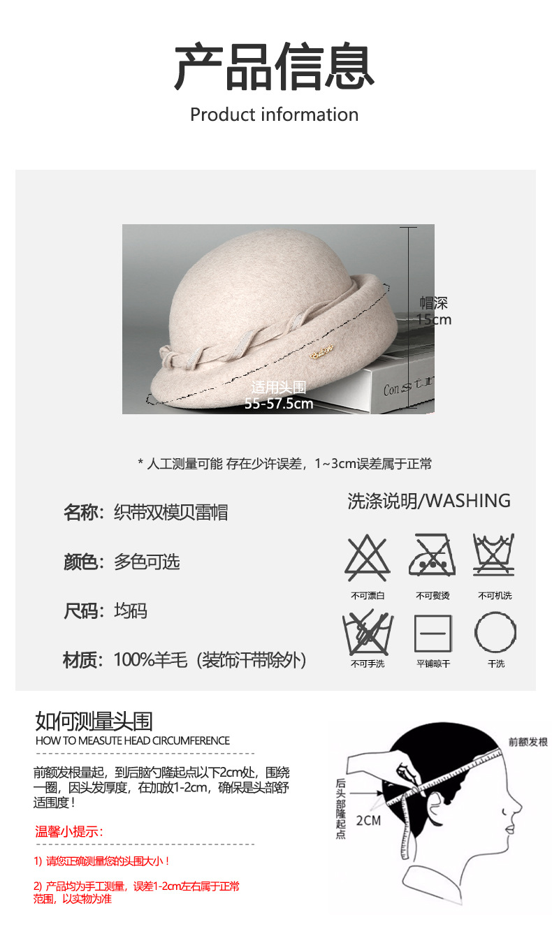 【服饰鞋包】-法式赫本风毛呢贝雷帽文艺澳洲羊毛复古毡帽
