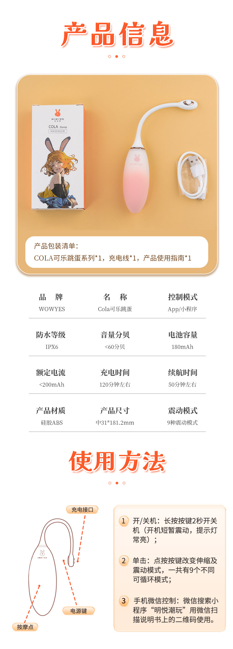 欧亚思新品Cola跳蛋女用自慰器全自动伸缩震动遥控跳蛋成人性用品
