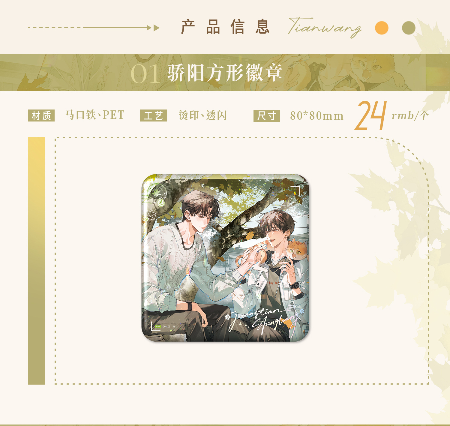 栗汀 某某 骄阳 方形徽章 吧唧 国谷 耽美