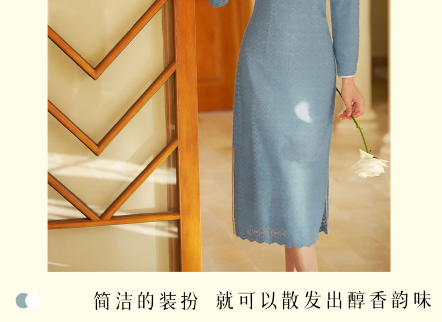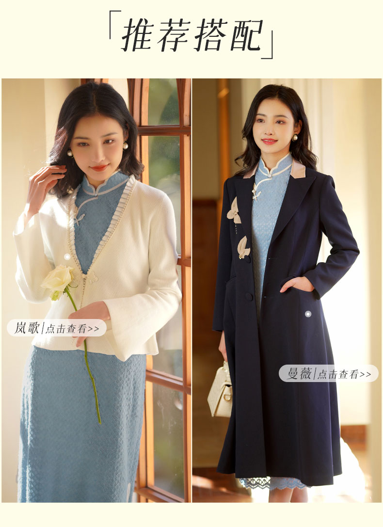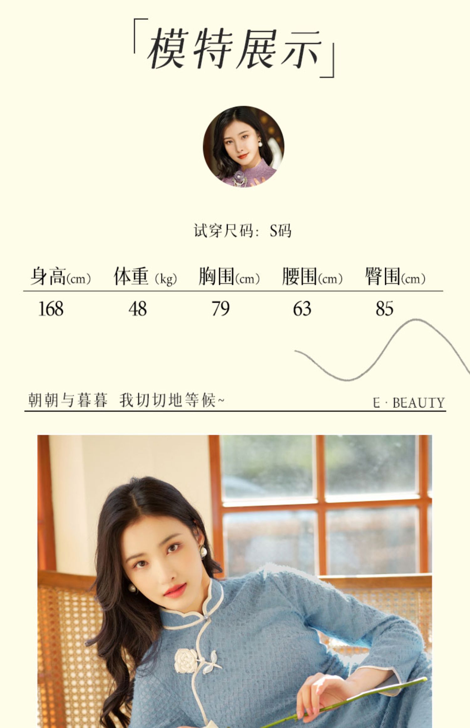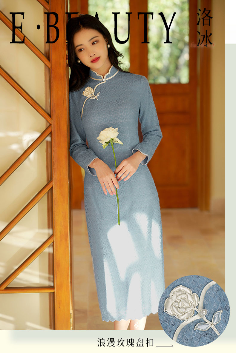 逸红颜洛冰2025春季新款旗袍改良版连衣裙女格纹V领印花长袖透气