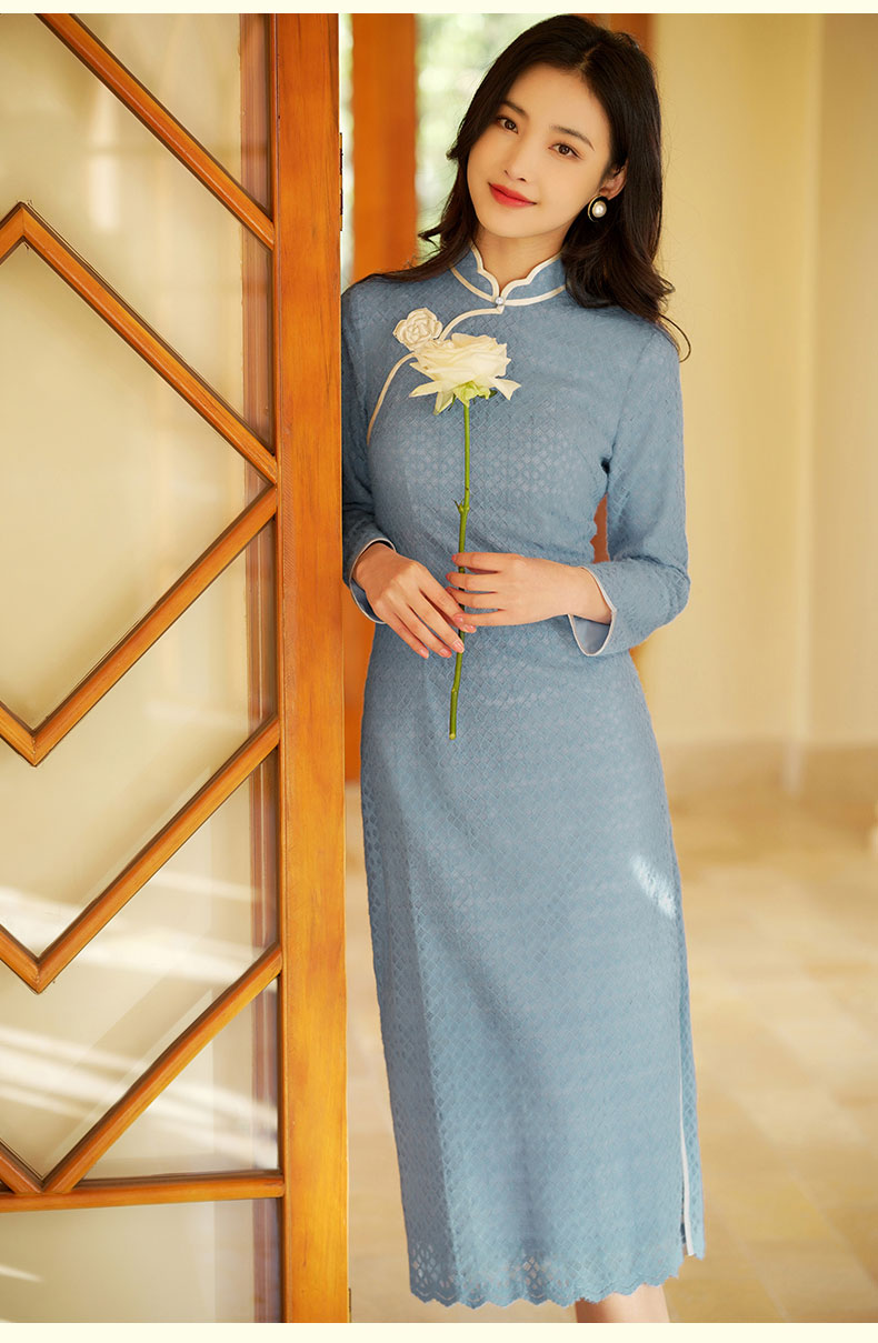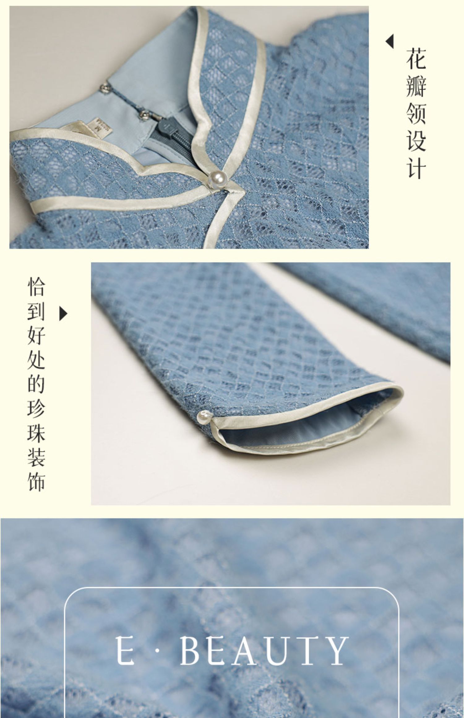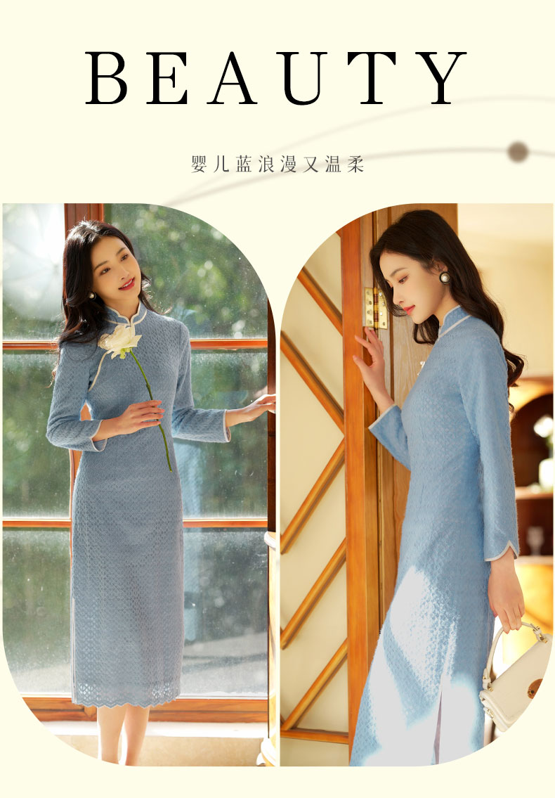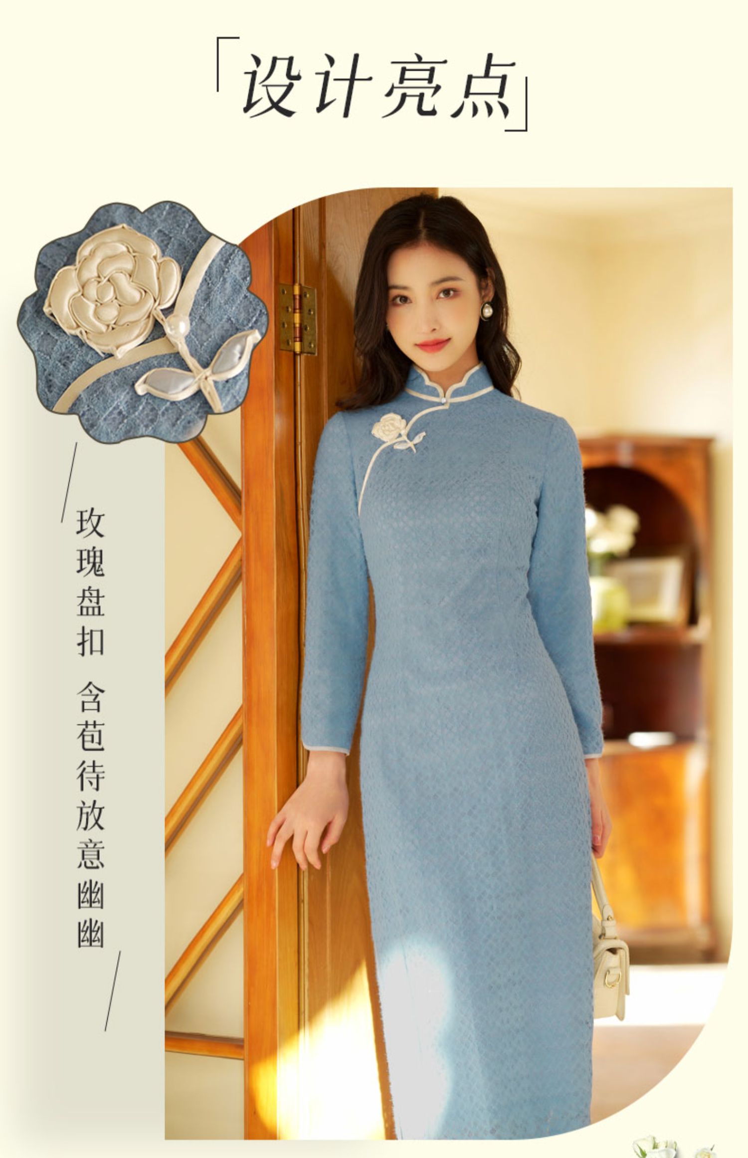 逸红颜洛冰2025春季新款旗袍改良版连衣裙女格纹V领印花长袖透气