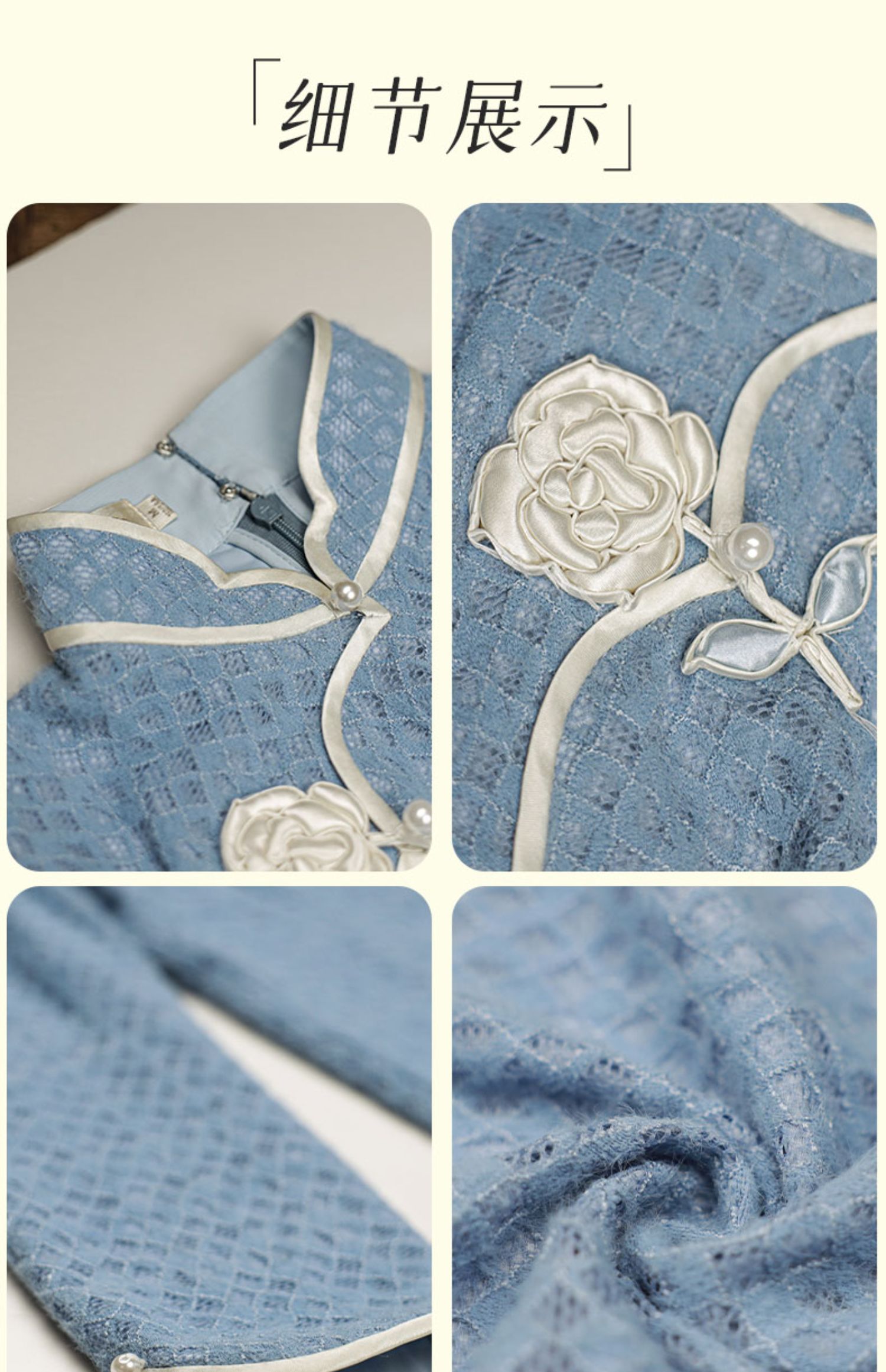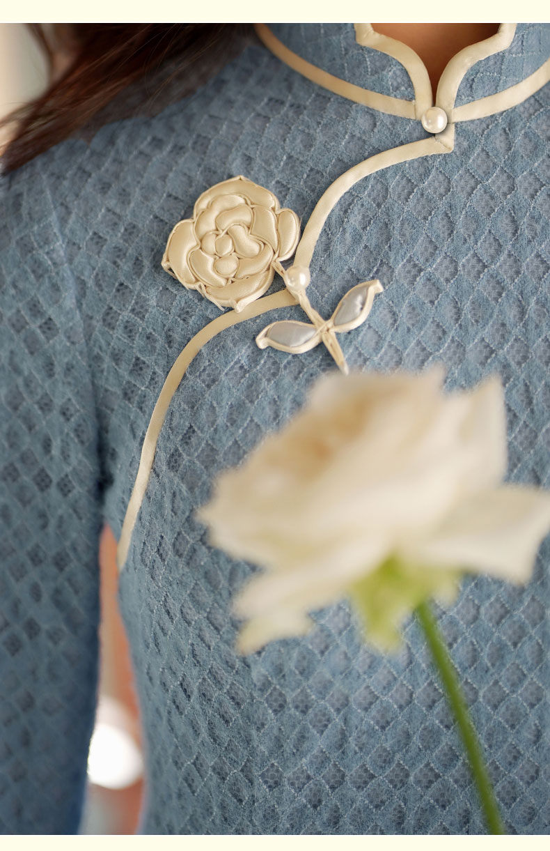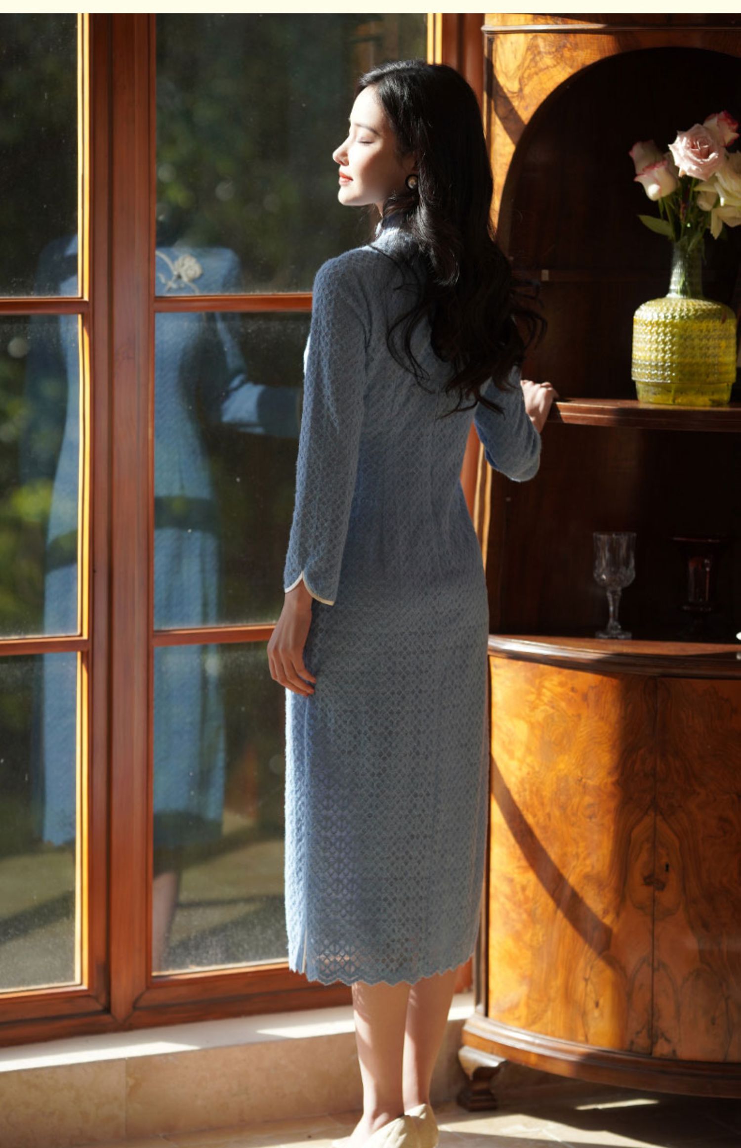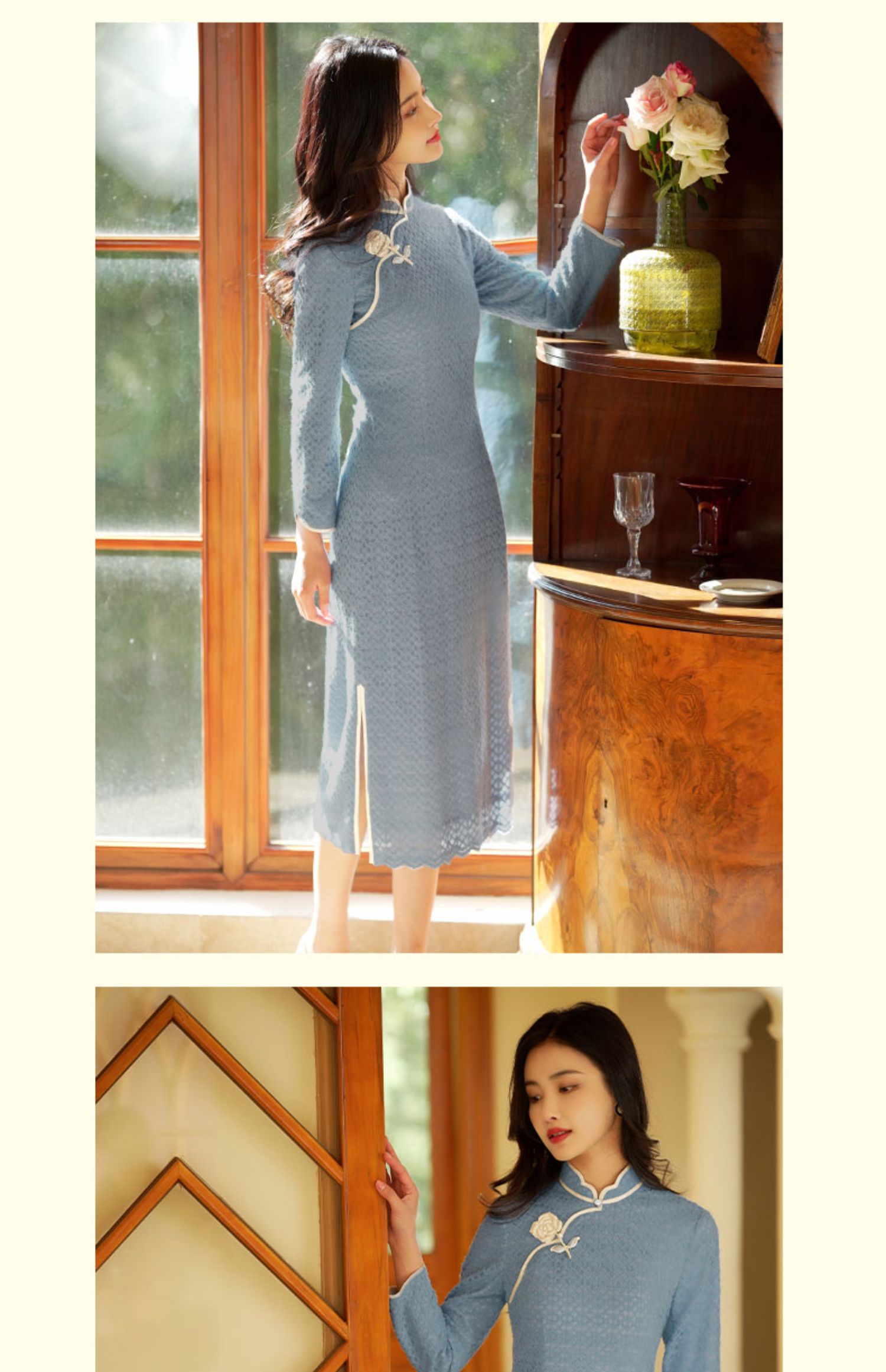 逸红颜洛冰2025春季新款旗袍改良版连衣裙女格纹V领印花长袖透气