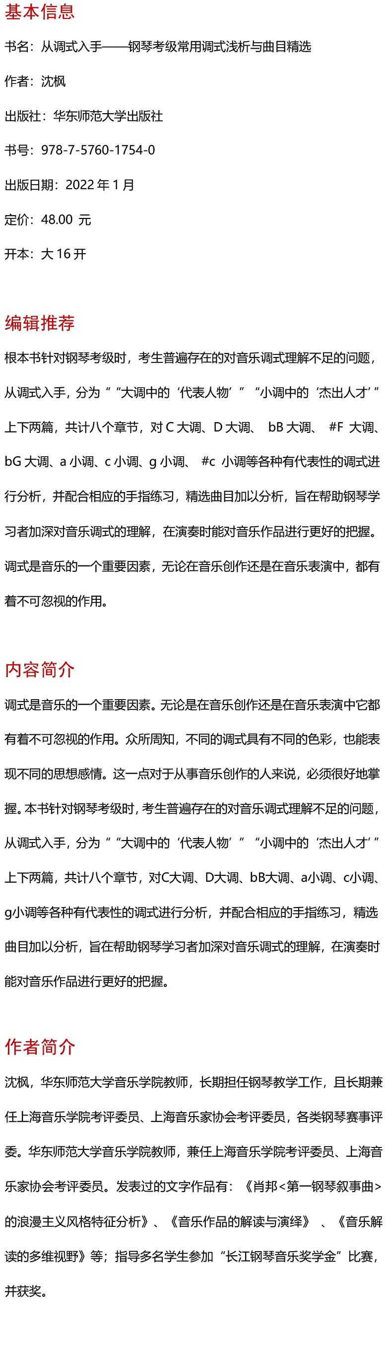 从调式入手 钢琴考级常用调式浅析与曲目精选 沈枫 编著 钢琴演奏 音乐表演