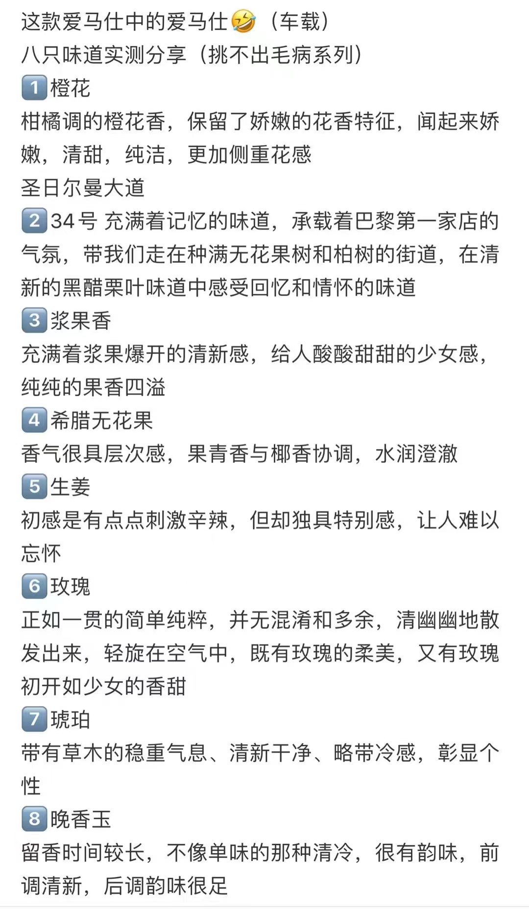 一共八个味道,34玫瑰浆果无花果基本是盲选香味。这8个味道是他家经典香,都很好闻!