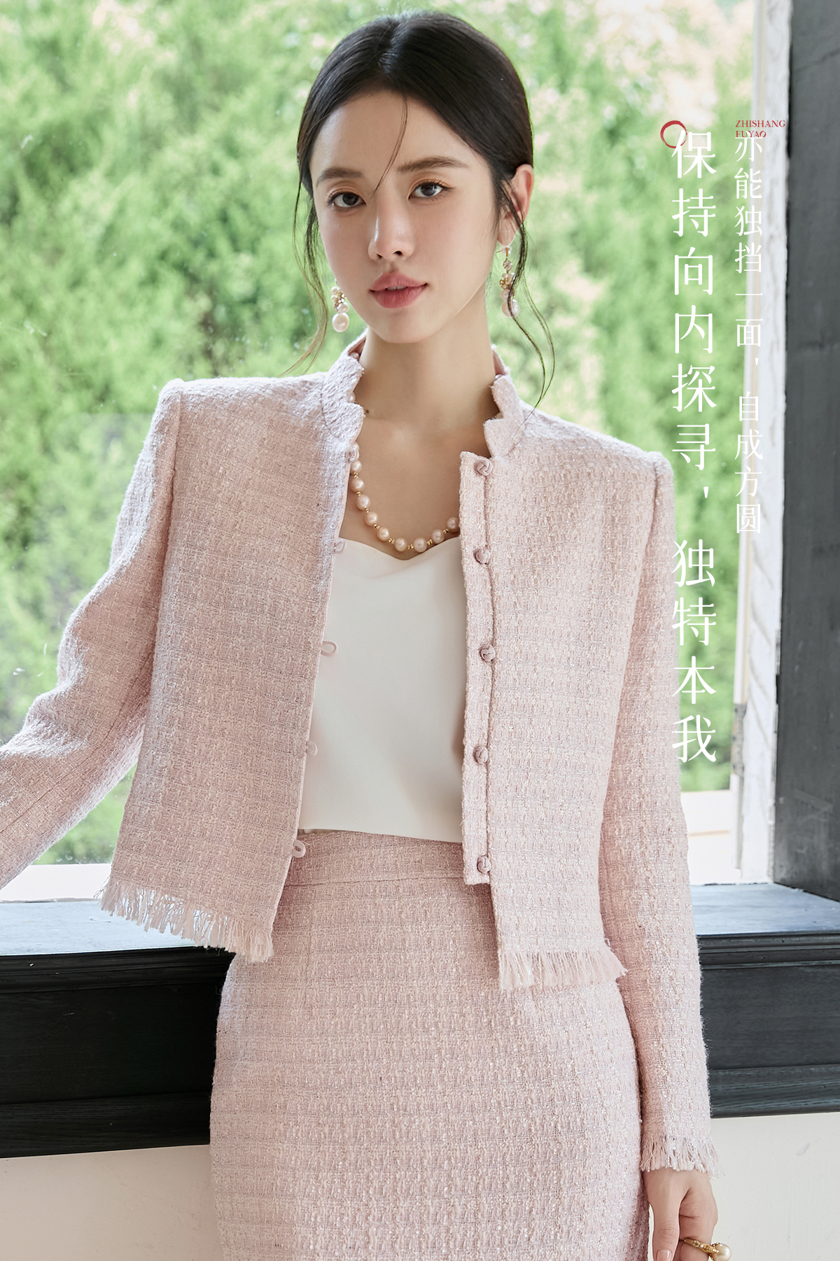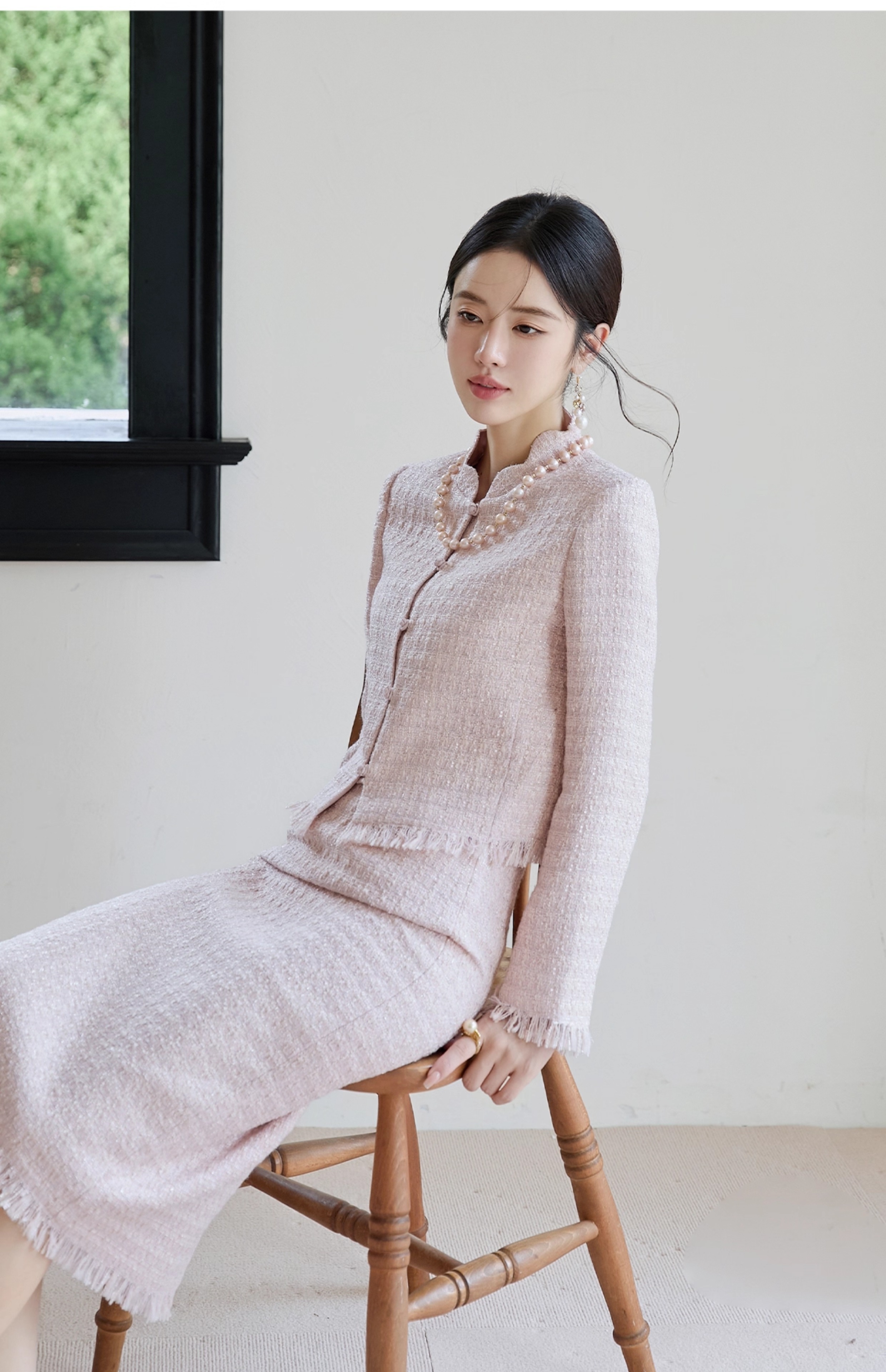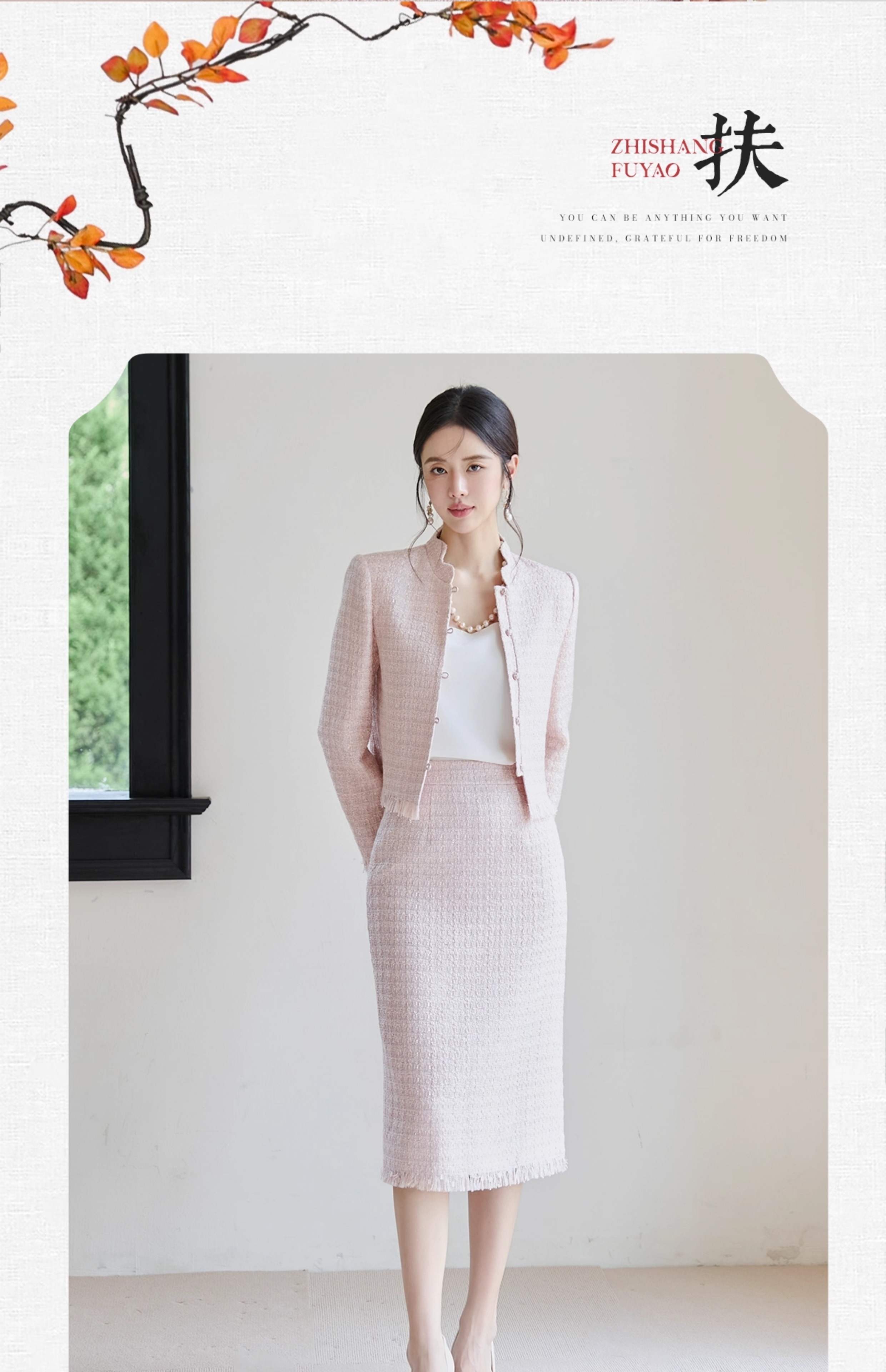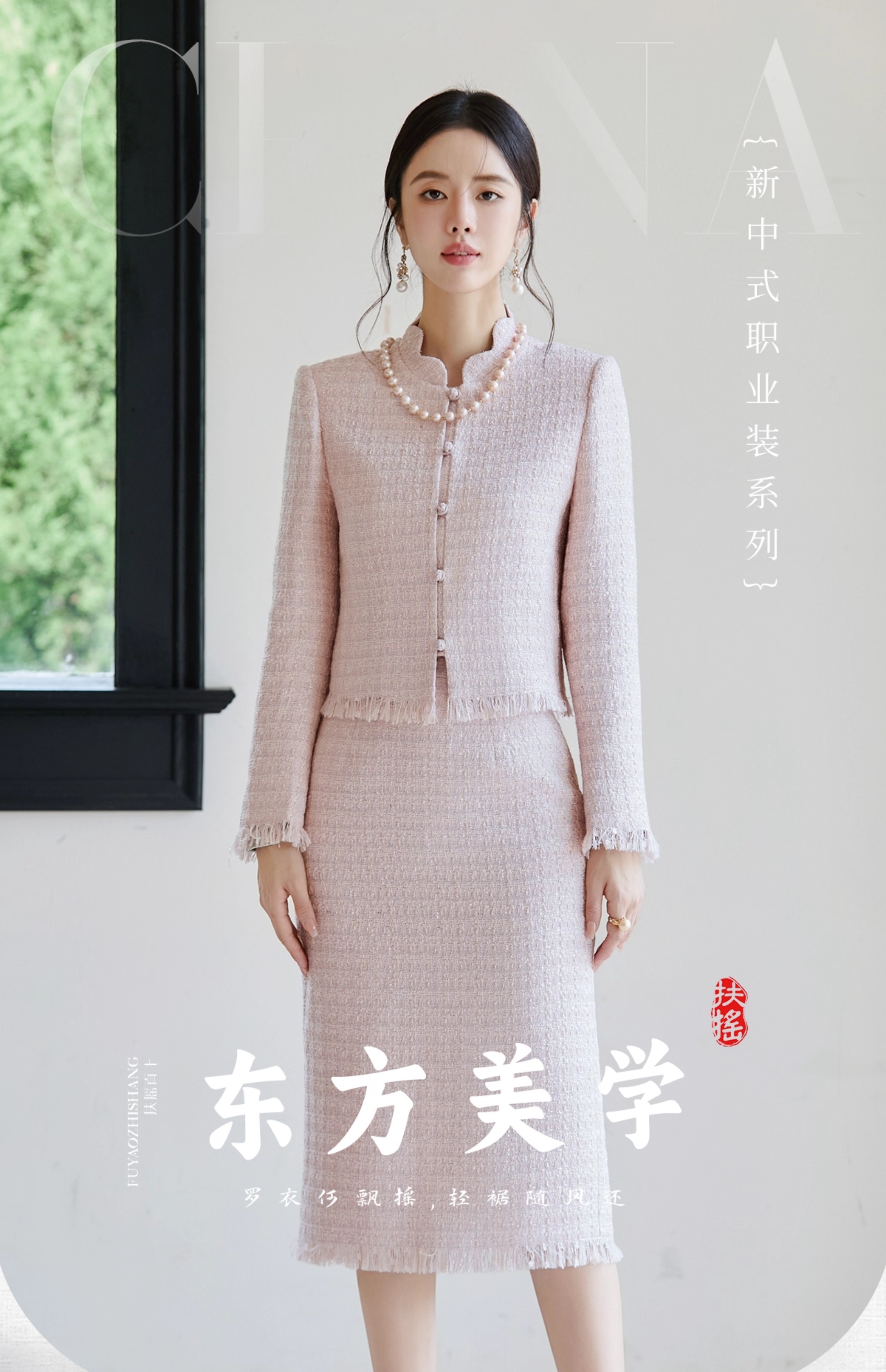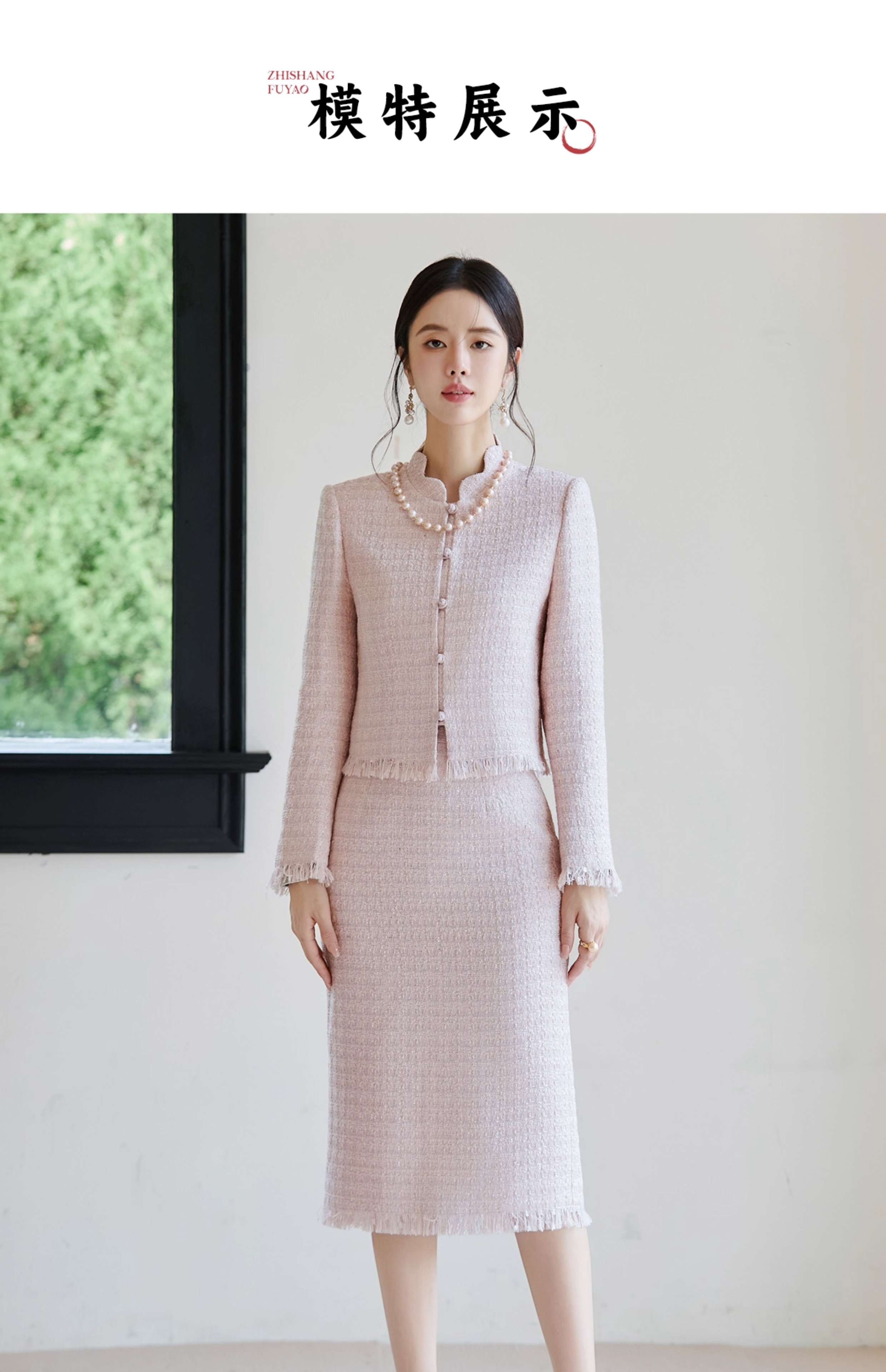 FUYAO扶摇 轻奢小香风套装秋冬盘扣立领短外套温柔富家千金感穿搭