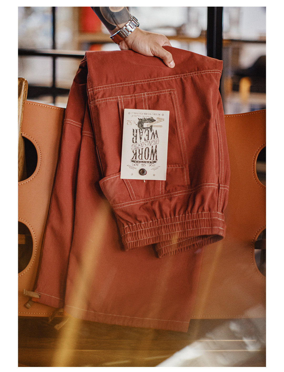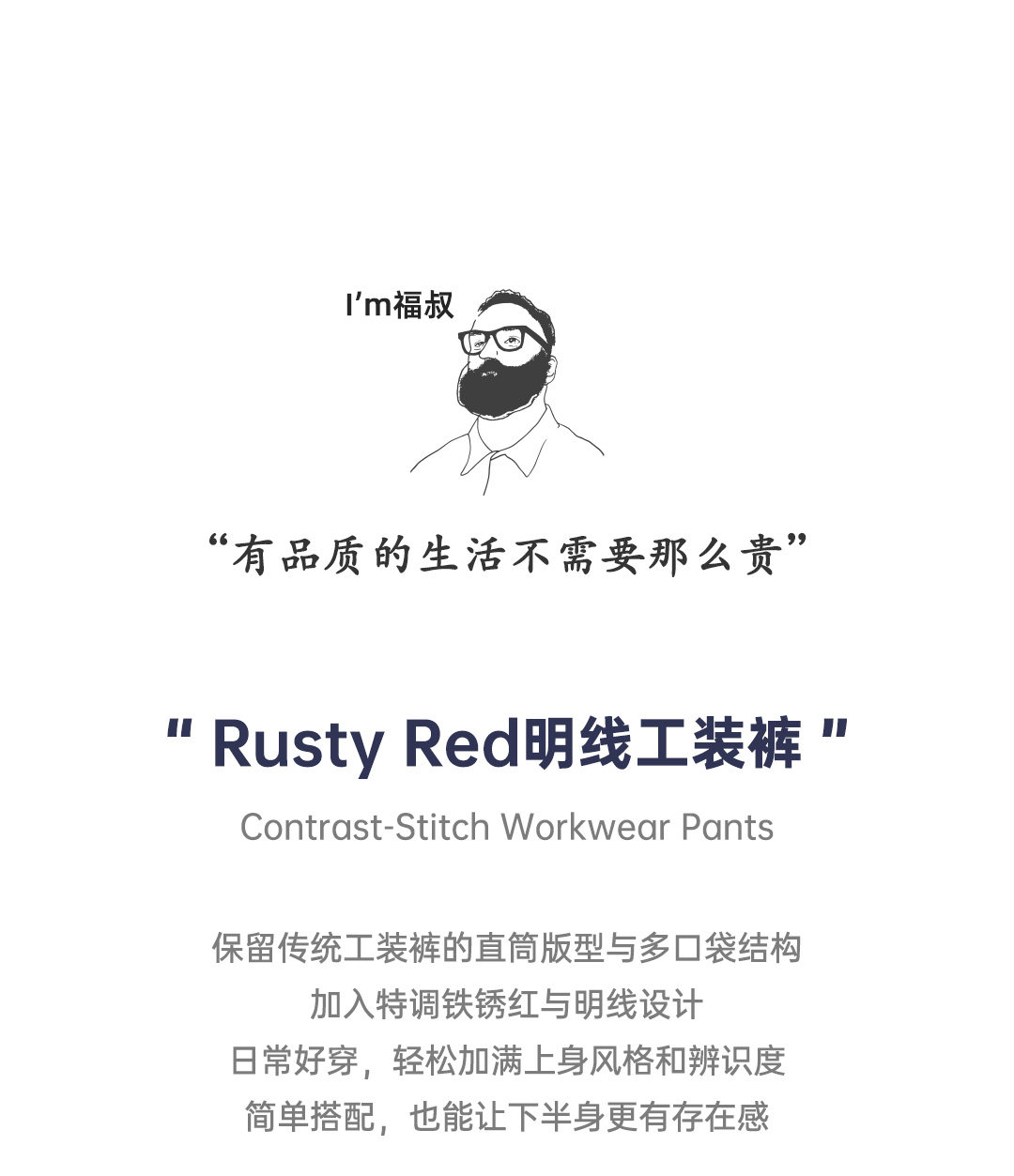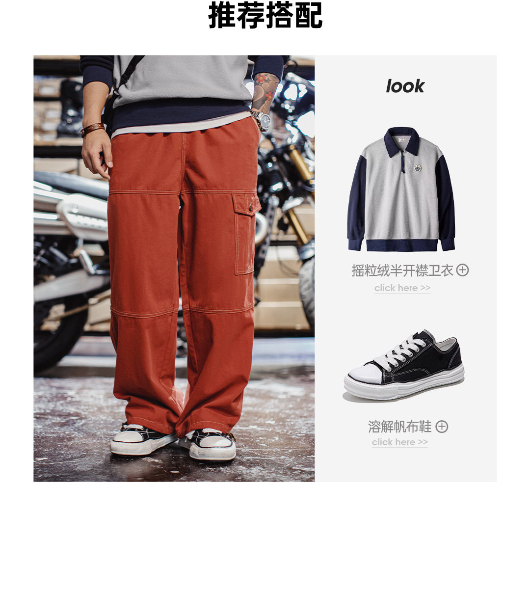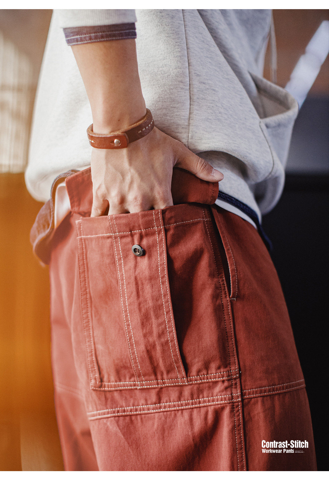 马登工装美式复古多口袋明线工装裤砖红色直筒阔腿束脚休闲裤男春