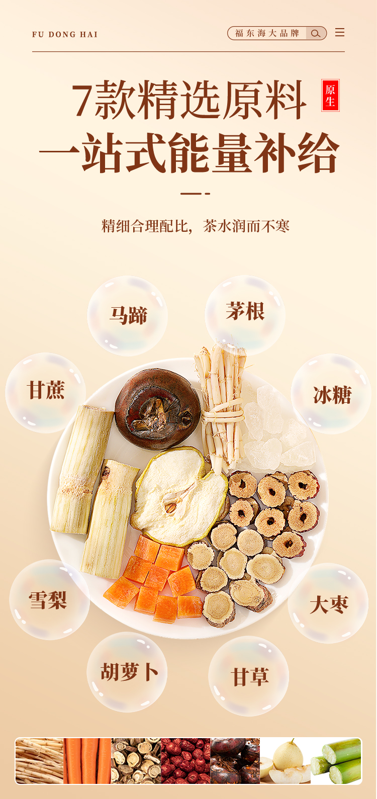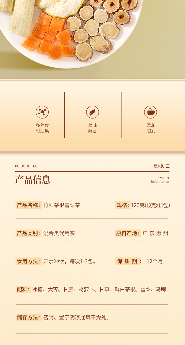 福东海 竹蔗茅根雪梨茶120克 花茶包竹蔗茅根雪梨茶