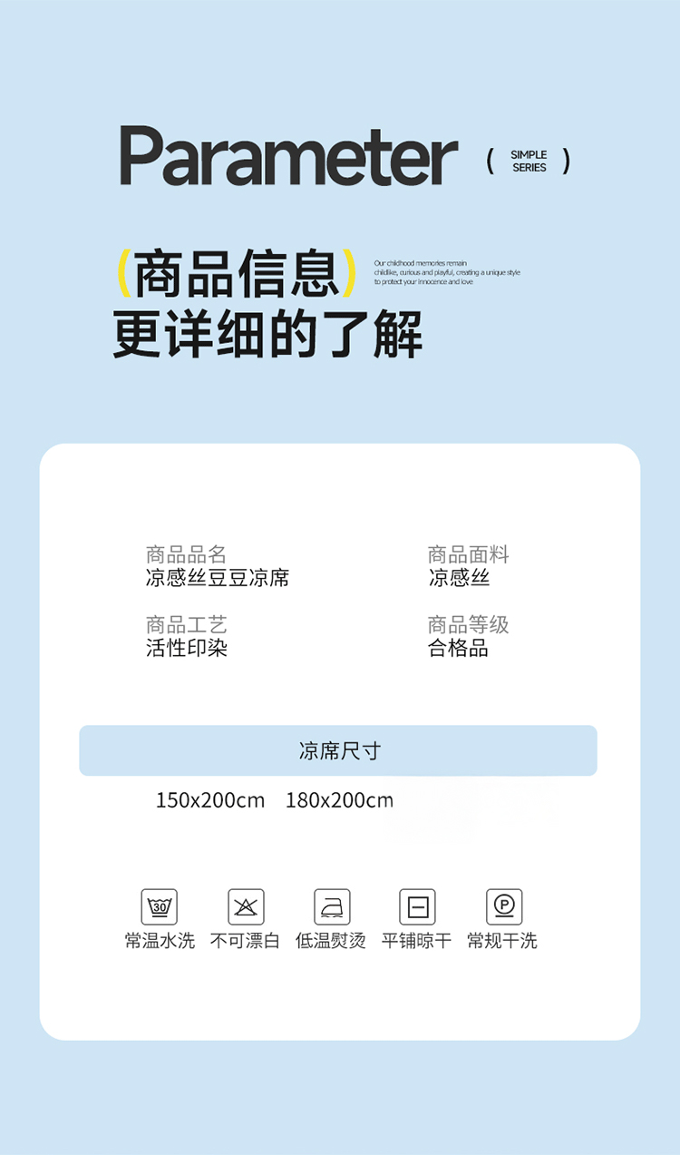 【品名】雅鹿3D按摩豆豆凉席3件套 透气 柔软 清凉舒爽 5色可选 【规格】冰川蓝、海湾蓝、抹茶绿、樱花粉、月光灰 【尺寸】 凉席150cm*200cm*1个+枕套48cm*74cm*2 个 凉席180cm*200cm*1个+枕套48cm*74cm*2*2个 【产地】国内 【材质】聚酯纤维100% 【发货包装】独立包装 【发货地】南通 【发货快递】中通 【不发货区域】新疆、西藏、港澳台 【发货时效】48-72小时,周末节假日顺延 【售后说明】非质量问题退货需客户承担运费,质量问题商家承担调换货!!! |