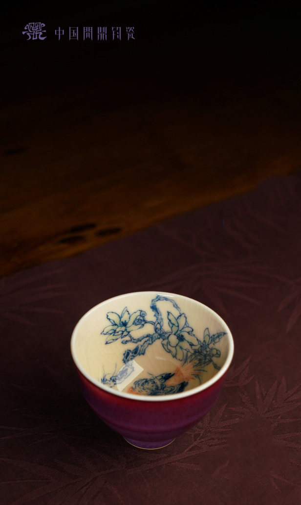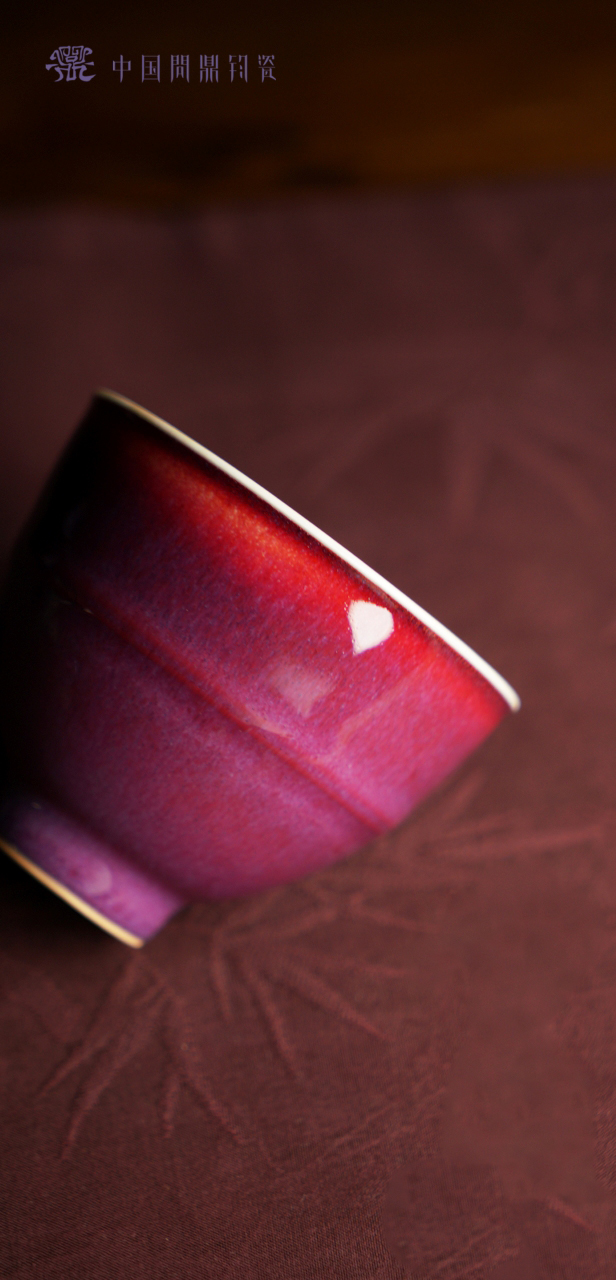 寒香慕古釉里红双勾莲压手杯(下单前请先咨询客服)