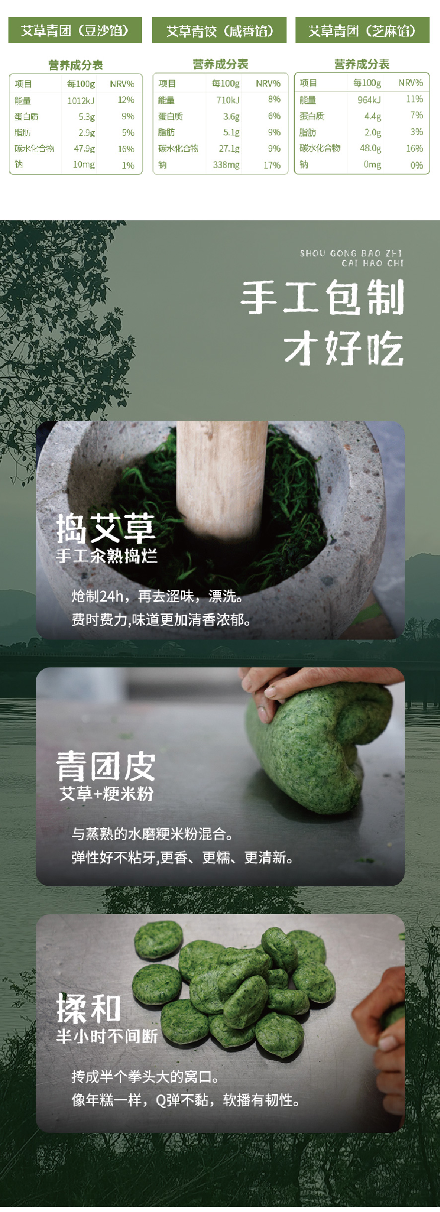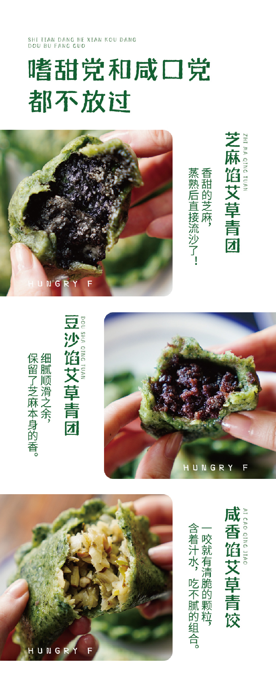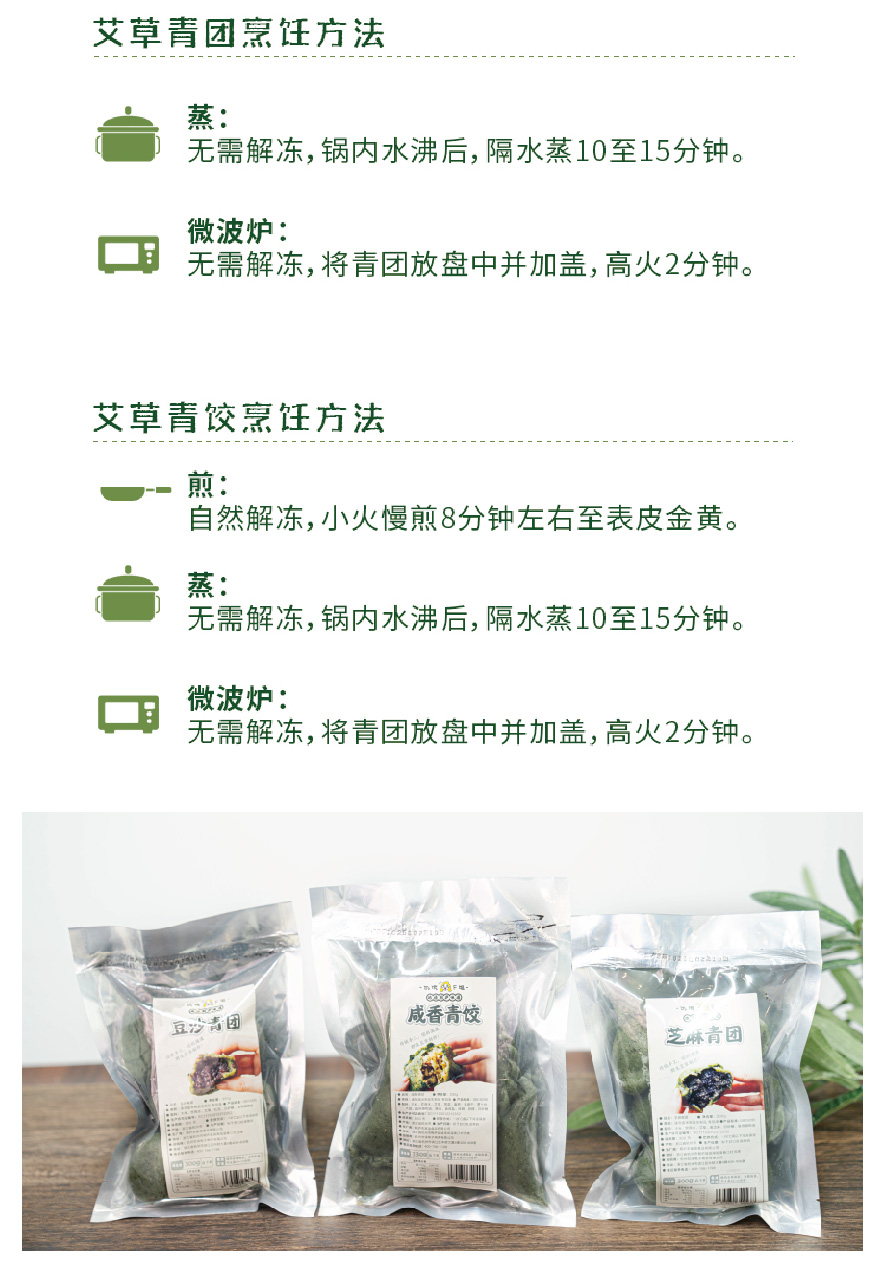 优选|江南手工艾草青团 豆沙/芝麻/咸香清明饺 艾香清新 馅料饱满 Q弹软糯 6个*2袋
