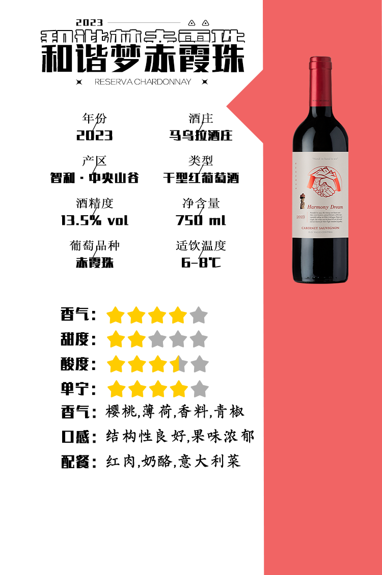 【智利精选】马乌拉酒庄和谐梦珍藏赤霞珠红葡萄酒 750ml 2023
