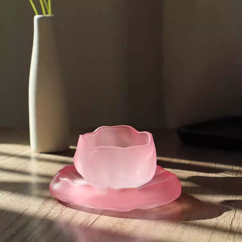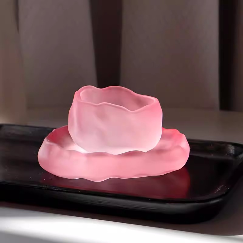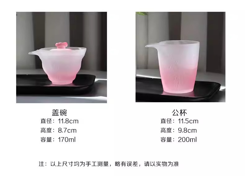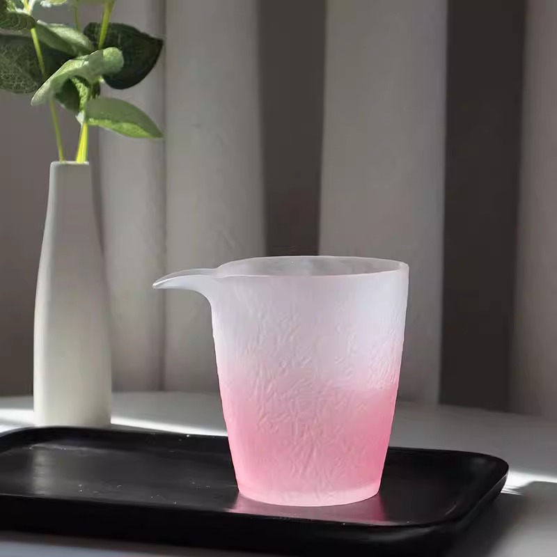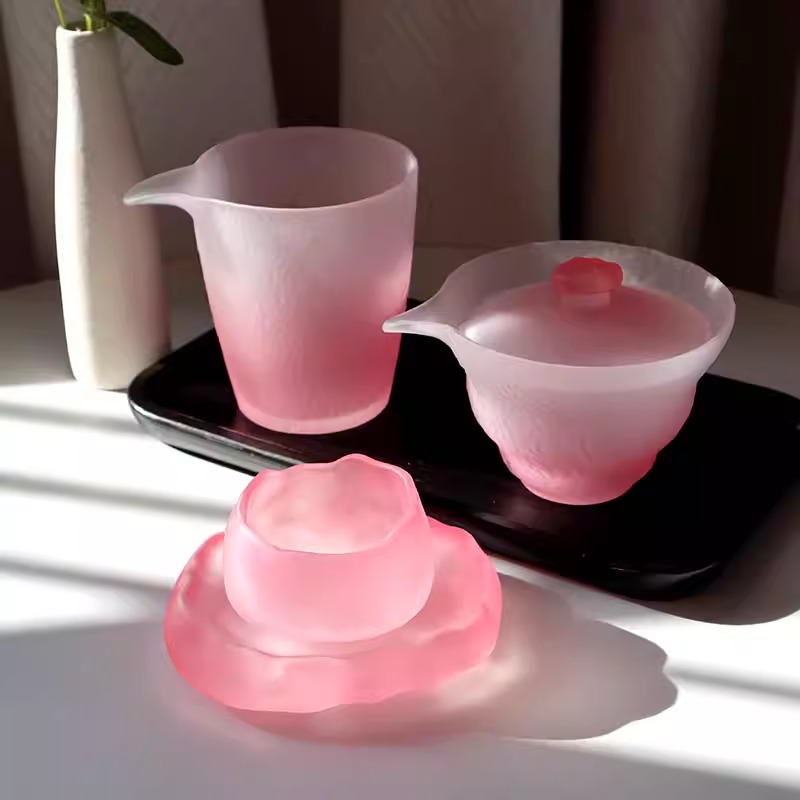 【日式粉色磨砂❗小仙女玻璃茶具套装】日式冰冻烧琉璃杯,玻璃茶杯家用,品茗小茶杯主人公道杯茶具套装L