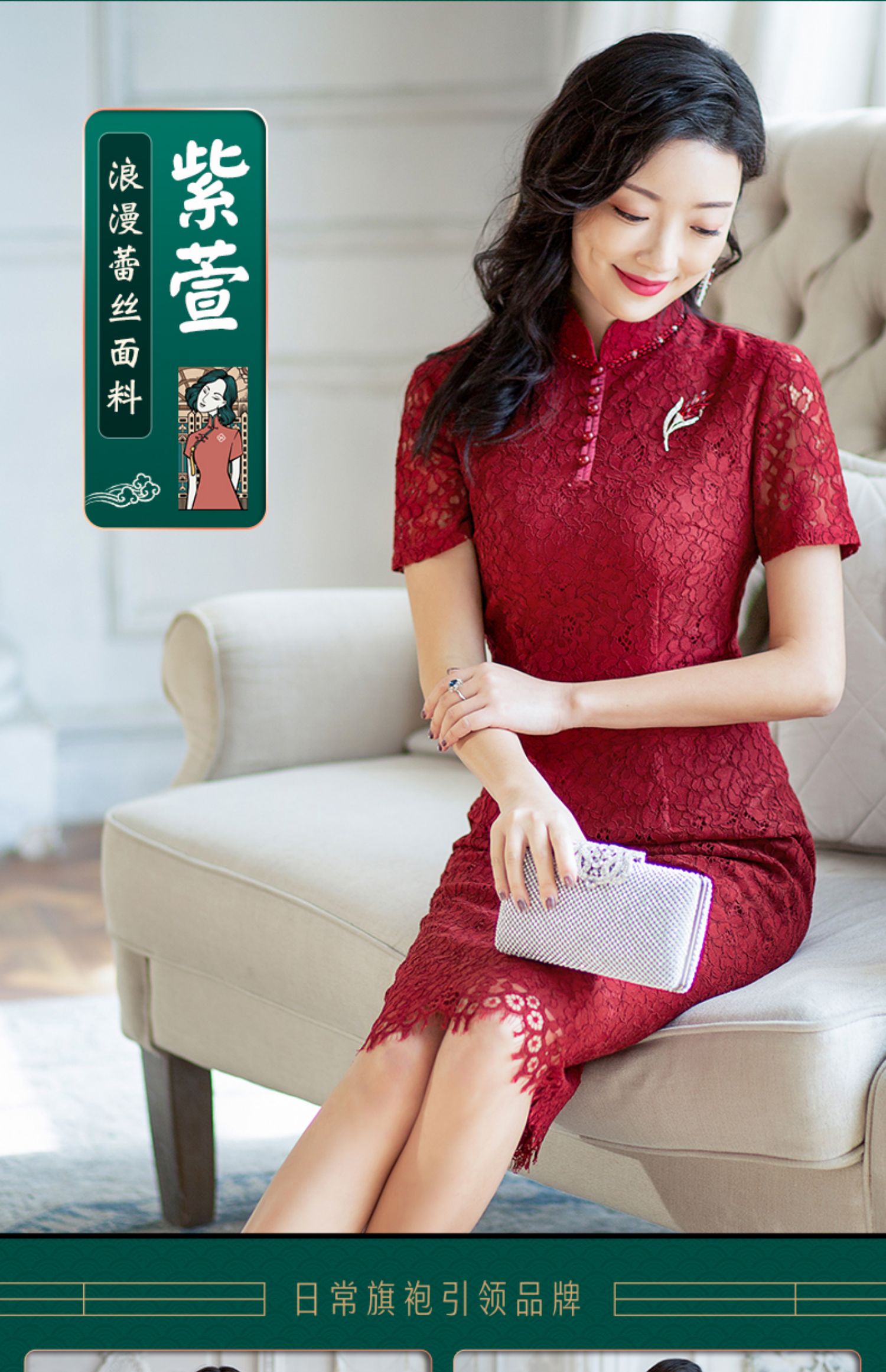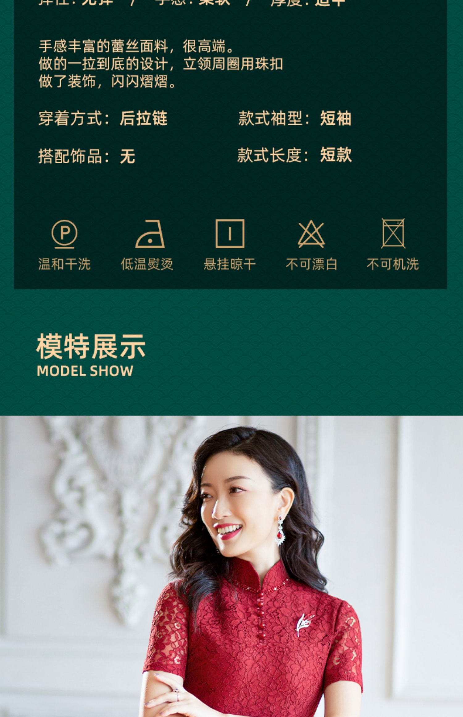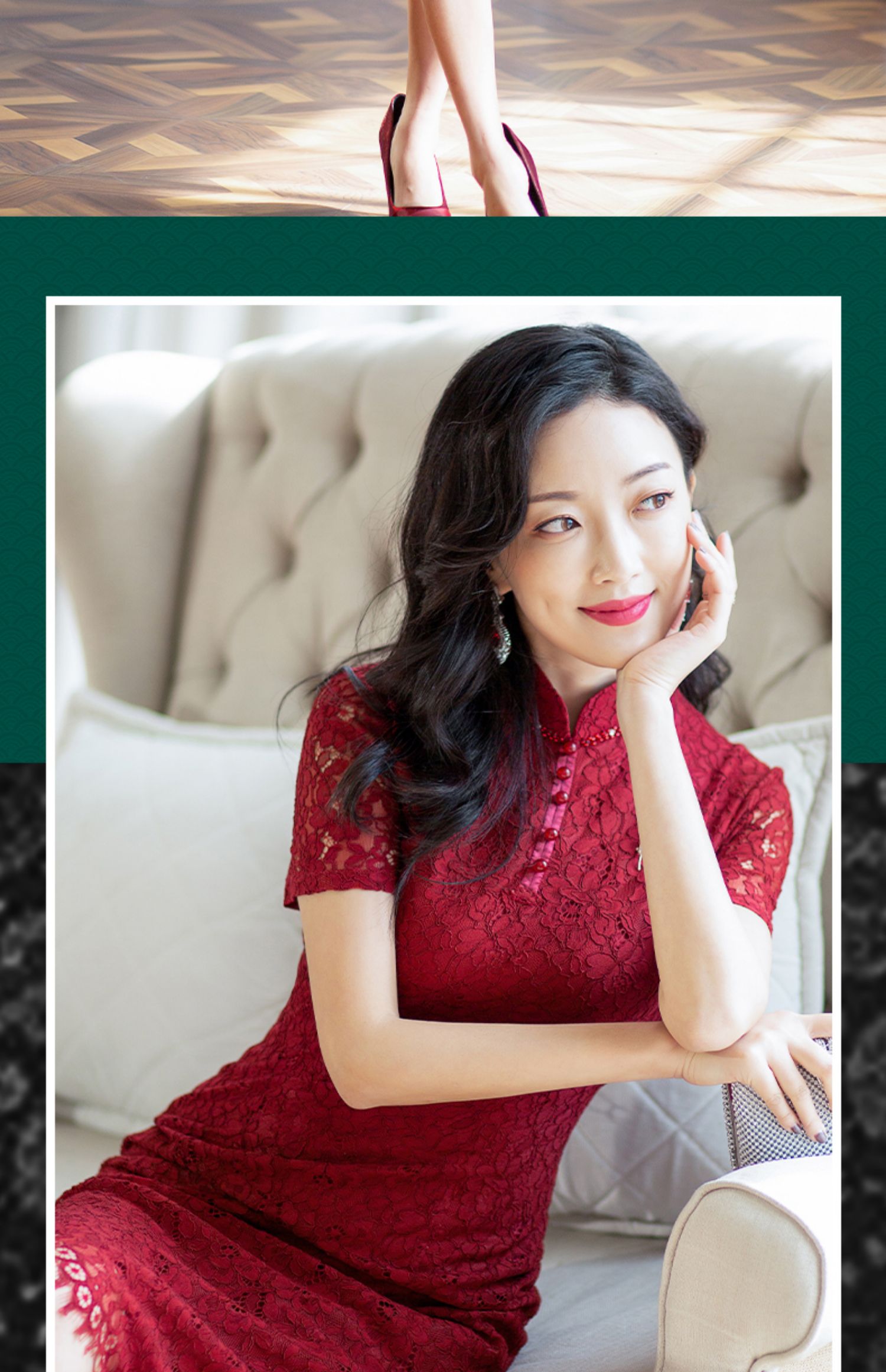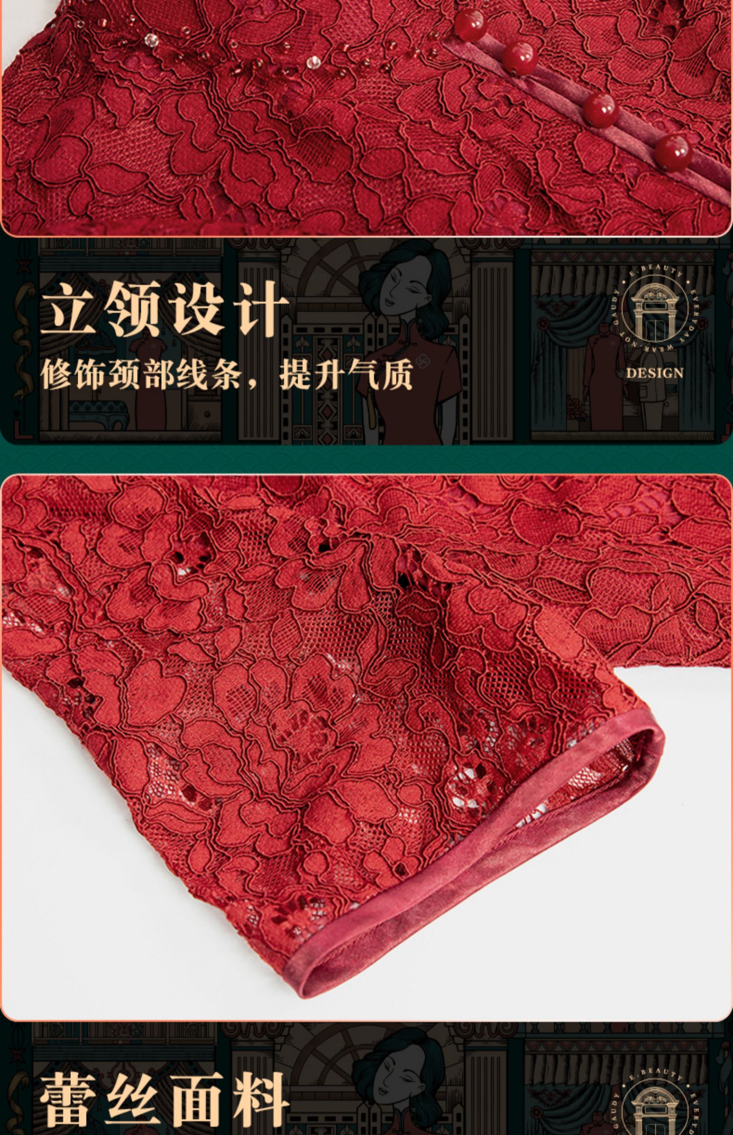 逸红颜 紫萱礼服裙2022年春秋新款连衣裙改良红色旗袍裙优雅端庄