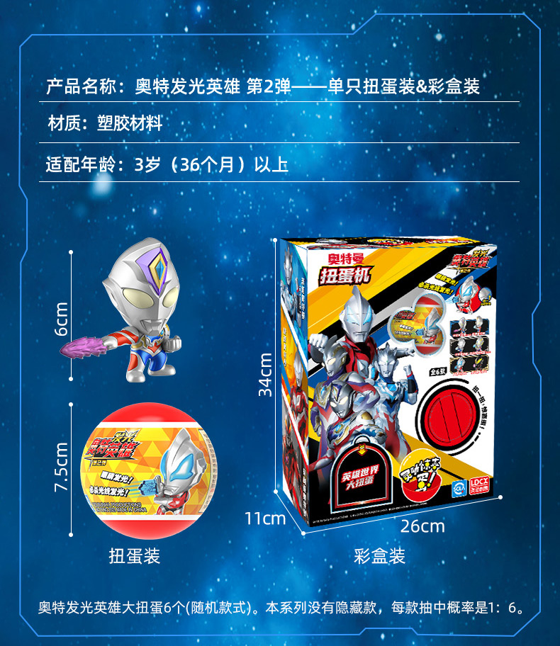 灵动创想 发光奥特英雄扭蛋机 第二弹 盲盒 6只/盒